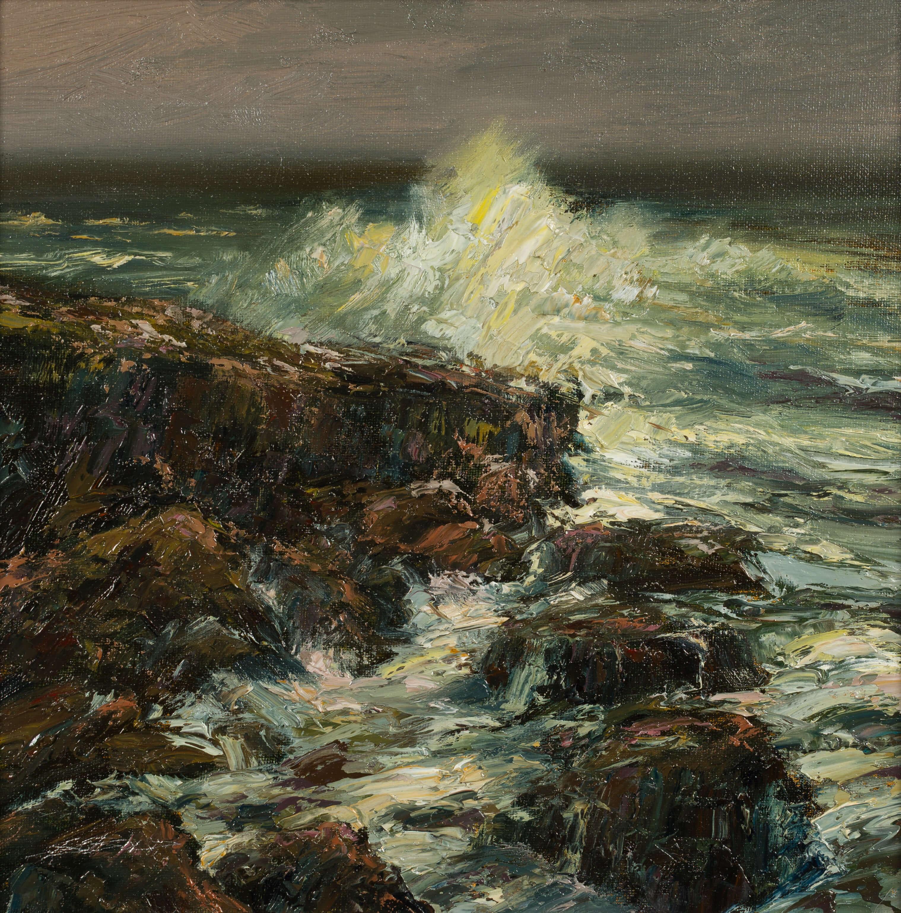 This beautiful painting by Jeroen Allart is part of his minimalist landscape and animal painting he did in his home country the Netherlands. 'A farm stands before you on the horizon....