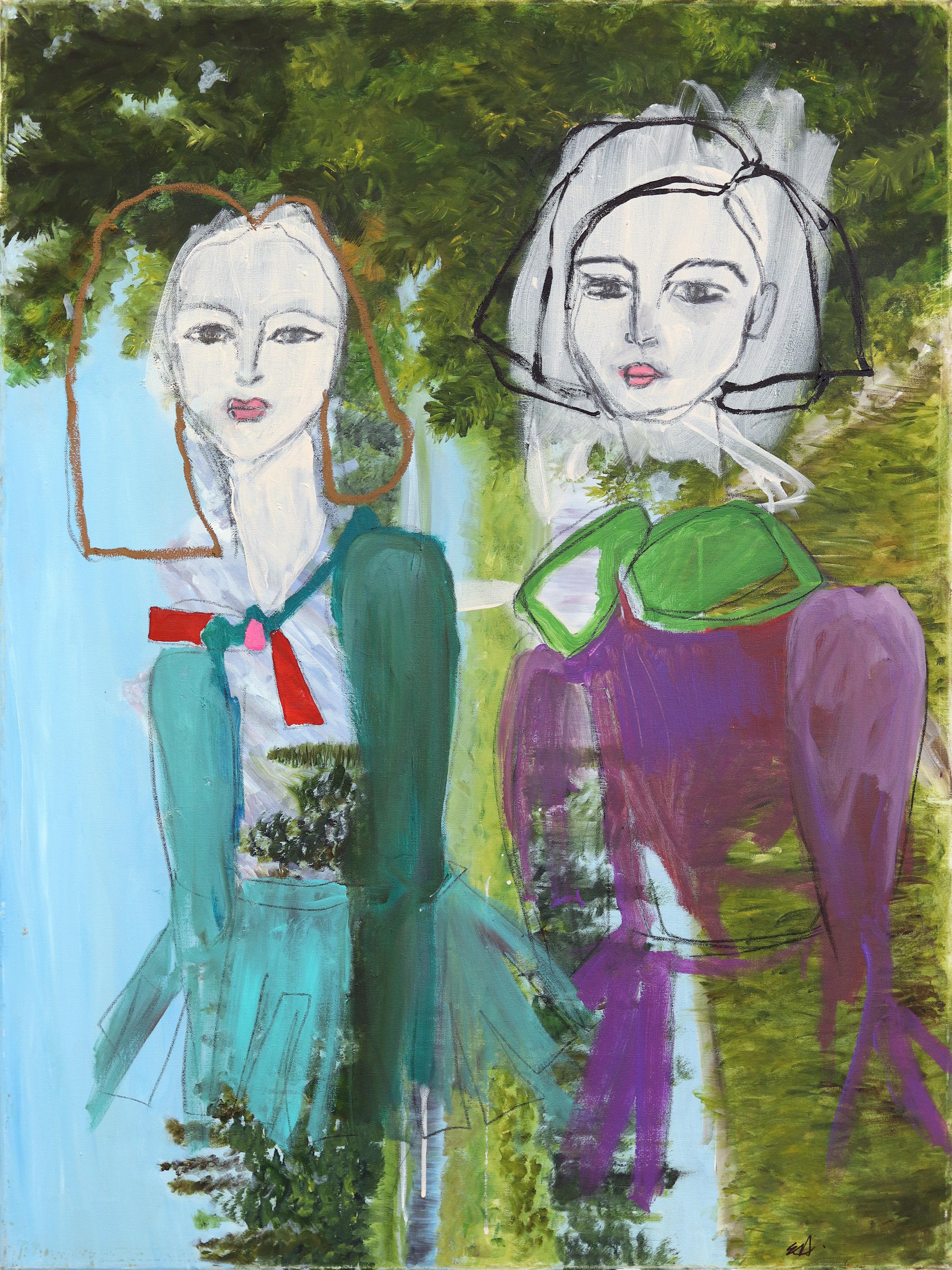 Signed lower right 'F. Sands Brunner' for Frederick Sands Brunner (American, 1886 - 1954) and painted circa 1930. A painting showing the artist's two daughters, Sibyl and Janet, fa...