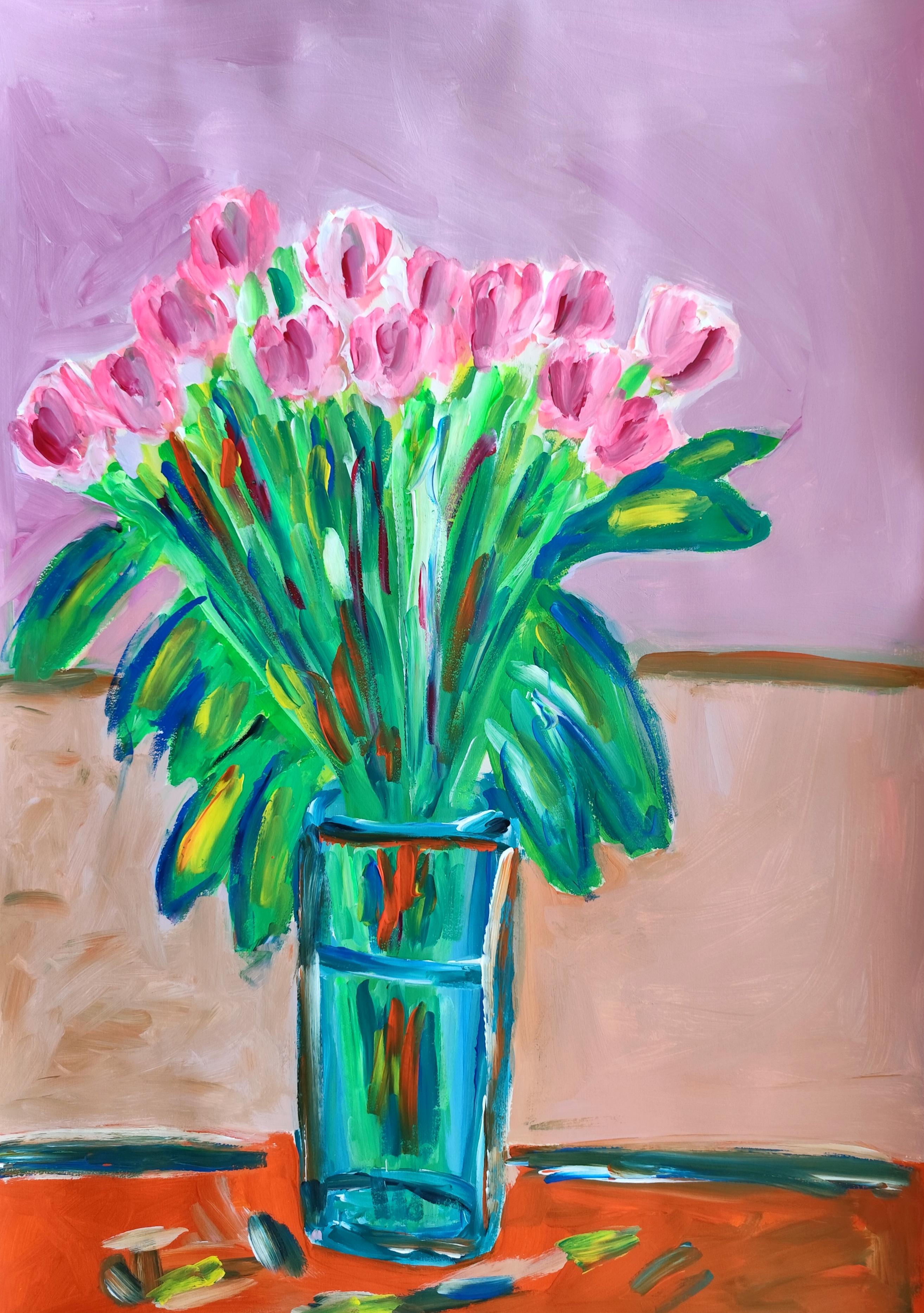With its substantial scale of 100 × 81 cm (39 × 32 inches), the work has a strong visual presence and functions beautifully as a large statement piece for collectors or interior designers seeking expressive European figurative art.