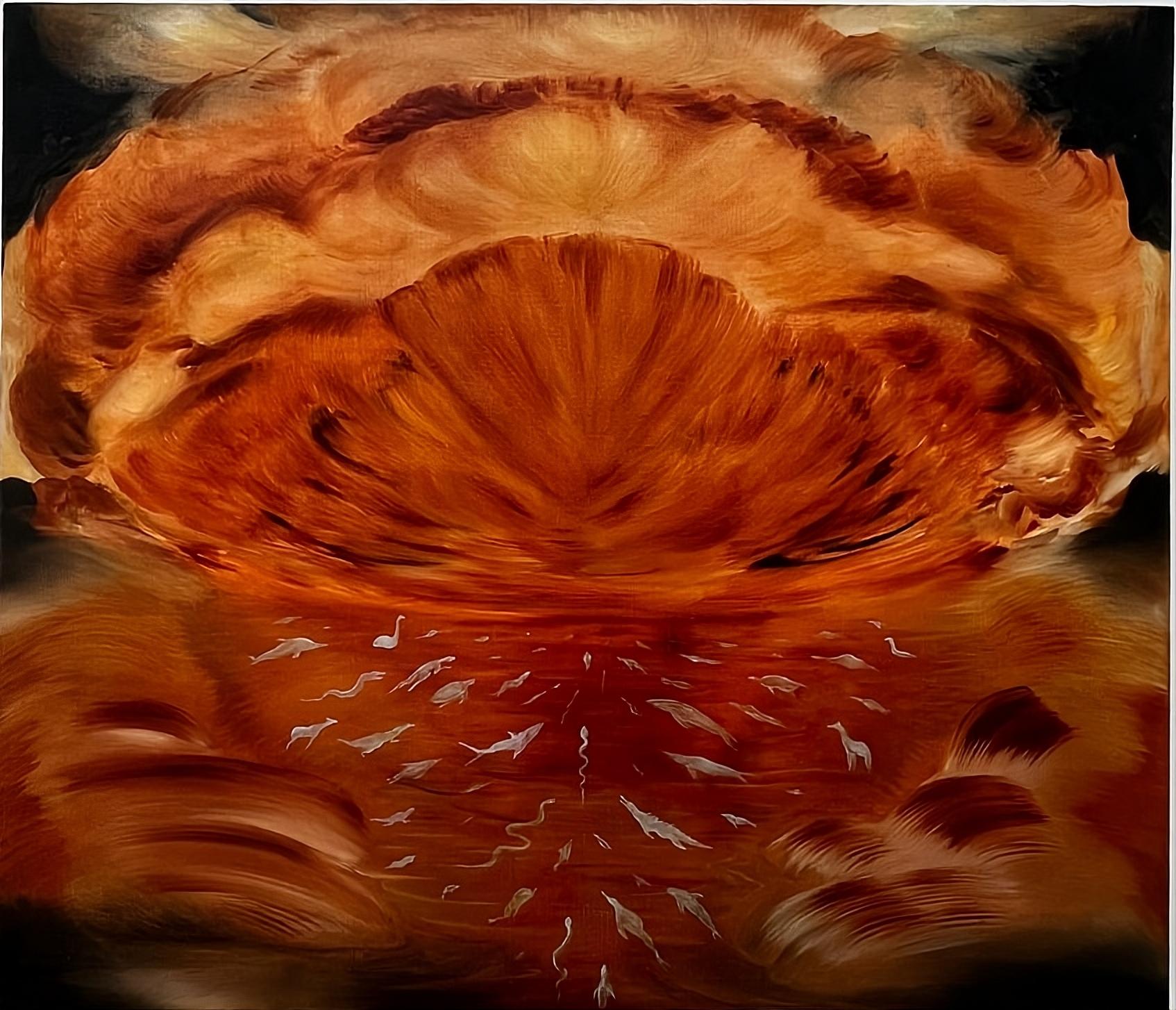 Add to this the beautiful watery effect from the wash on the paper and we can immediately see references to Bengal school art techniques. It is not surprising that the artist employs this medium. Neuroarthistory points to the rich heritage of Bengal school painters and the fascination with wash technique emanating from their connection to the water which provides the backbone for the region. From supplying food; fish and seafood, to transportation, agriculture and festivities. Bengal and Bangladesh live and die with the water.