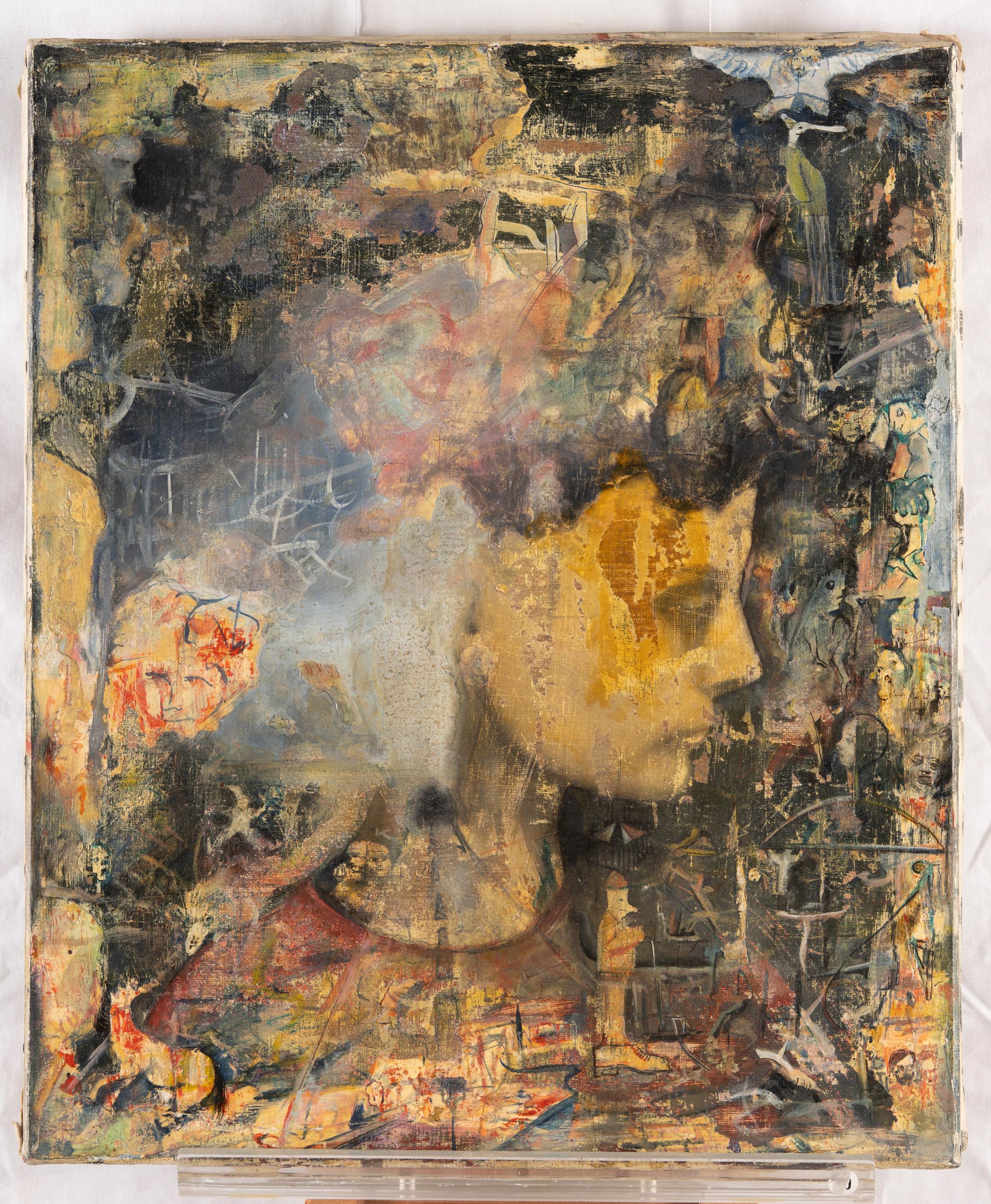 1930's Oil Dark Brown Thoroughbred Racehorse Standing in Profile Signed Painting