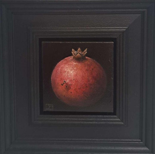 Discover new paintings by artist Dani Humberstone. Dani Humberstone uses the symbolism of ripe fruit to illustrate the narrative. Painting directly from life allows her to translate three dimensions into two and capture the essence or life force of the subject. Individual fruits damage easily; so as they slowly age she tracks their gradual decay in the painting as she works. Fruit has been used metaphorically in art and language for centuries. It has helped Illustrate Fairy Tales, Mythology, The Bible and Shakespeare.etc An apple in Renaissance painting was symbolic of ‘a fallen woman’ and we still use fruit analogies to describe ourselves and our lives today. In her own work the artist also uses elements of abstraction, landscape or line drawing to hint at a deeper narrative within and opening the door to unseen possibilities beyond the immediate image. Dani Humberstone paints in oils, predominantly Old Holland Classic Oilcolour - using transparent glazes over opaque colour which creates intense levels of luminosity and depth. Strong light and shade, chiaroscuro, give atmosphere and tone.