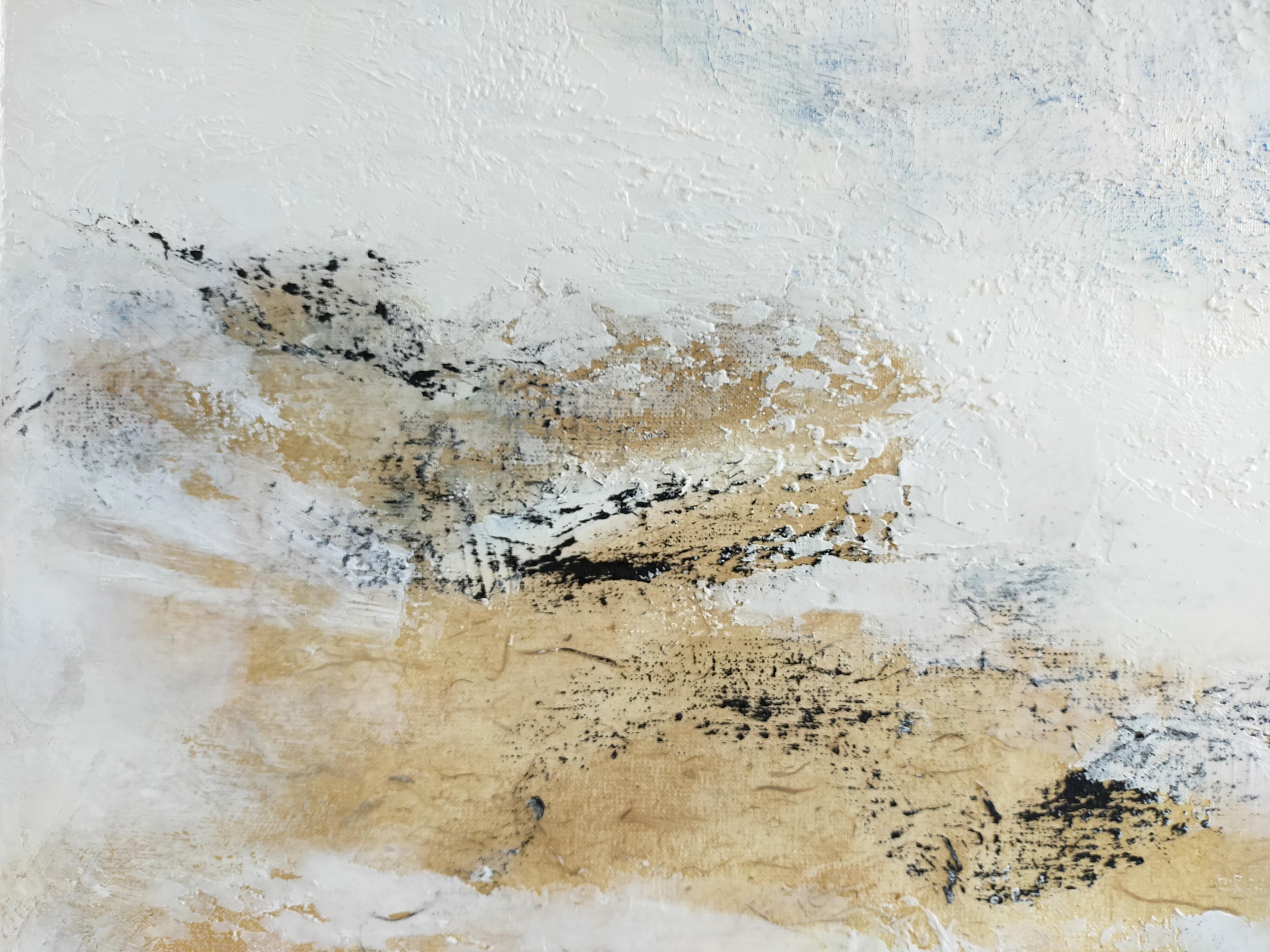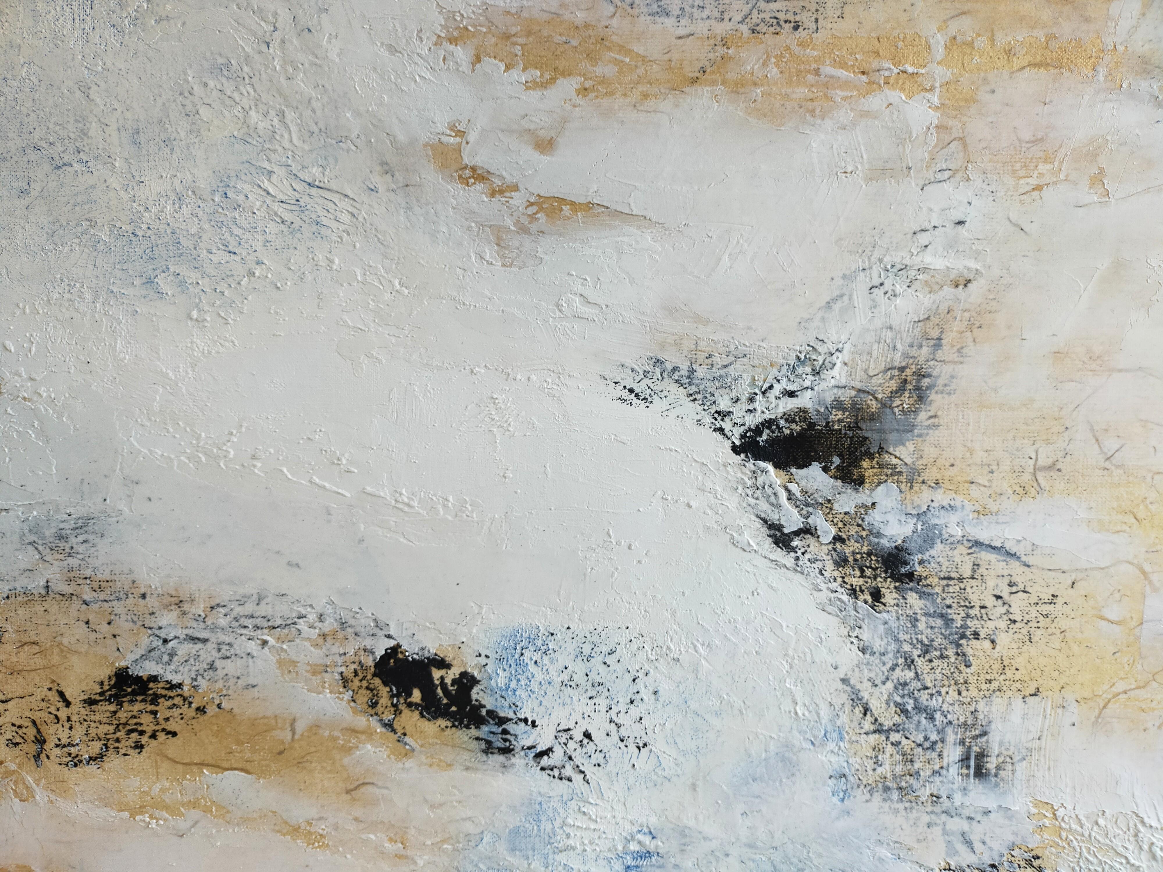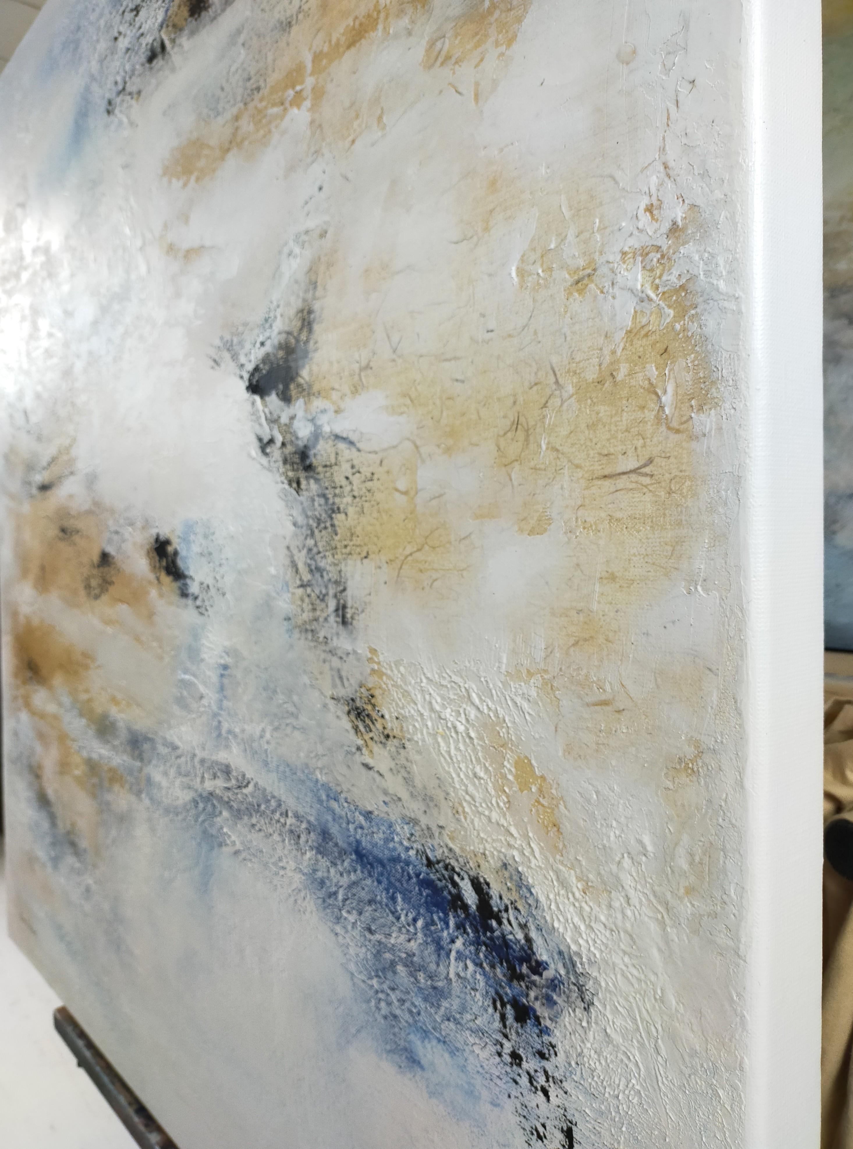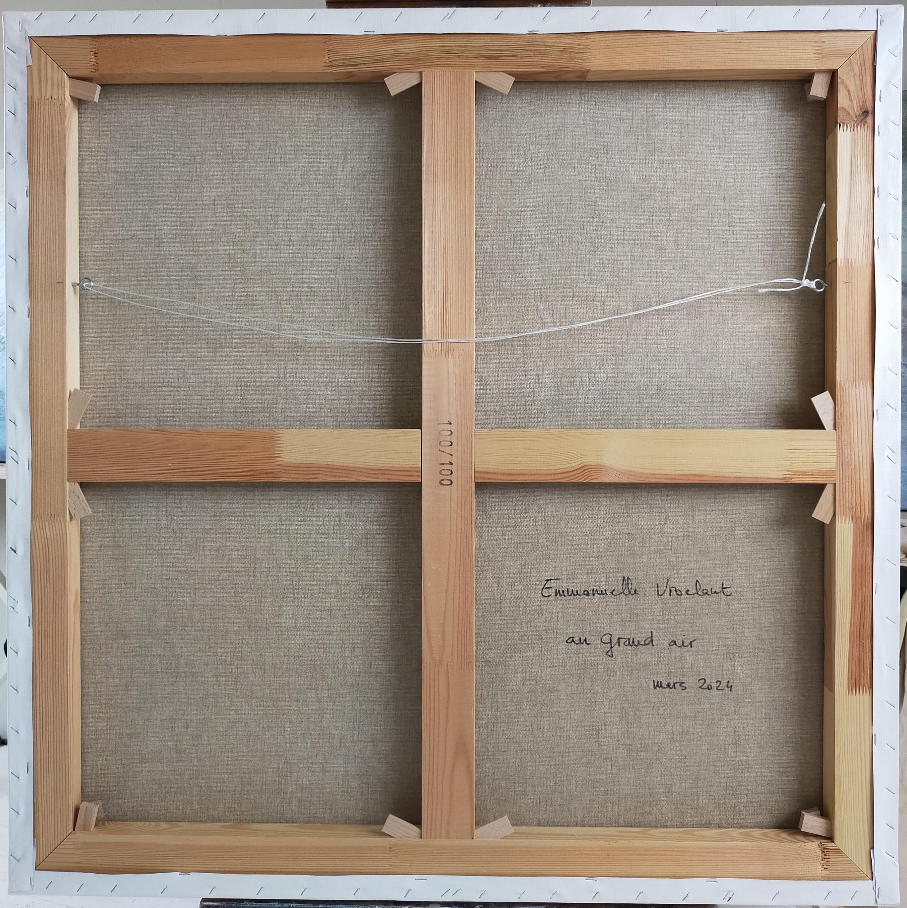 Emmanuelle Vroelant"in the open air" abstract acrylique, collage, marble on linen canvas 100x100cm2024