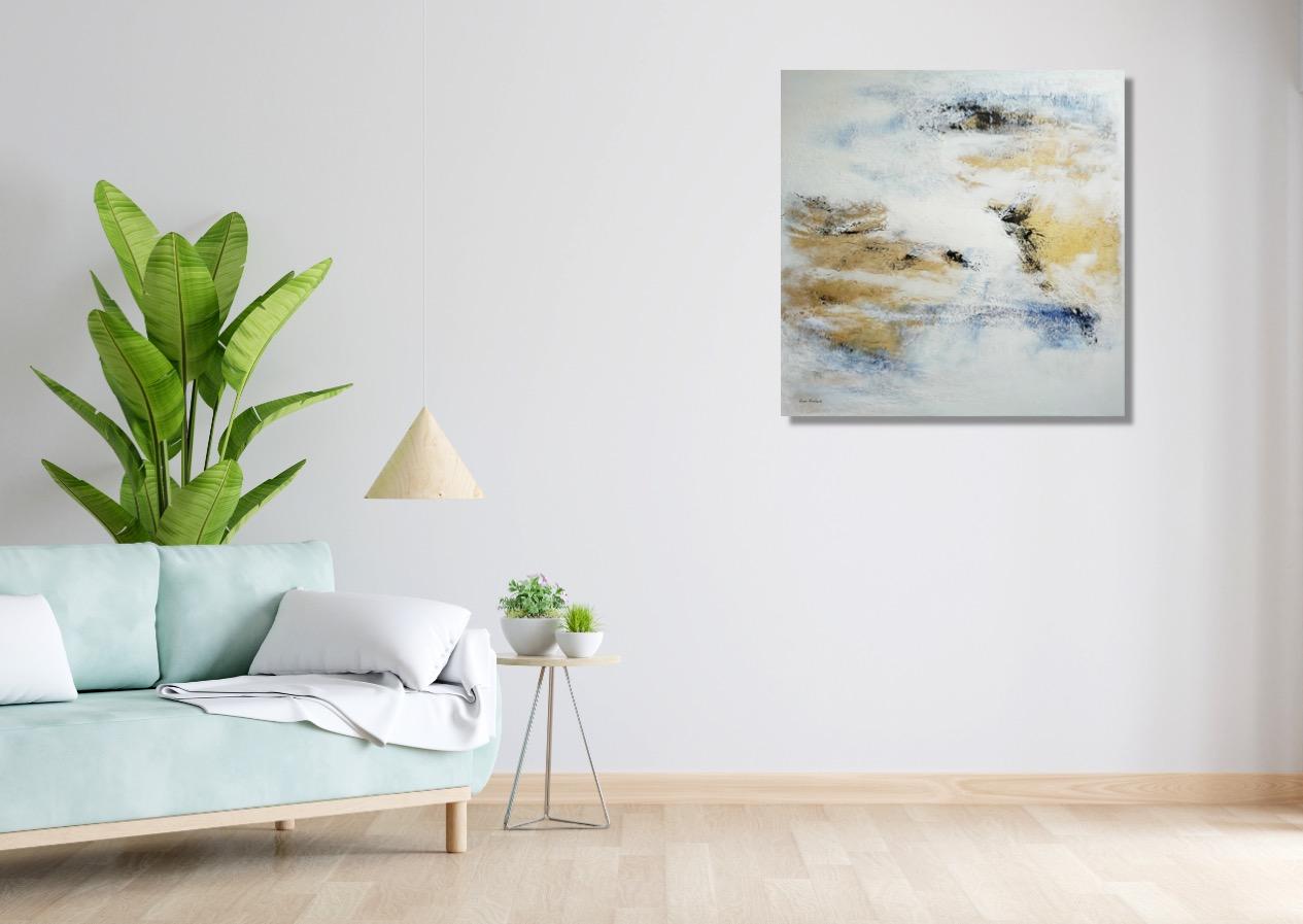 Items Similar to "in the open air" abstract acrylique, collage, marble on linen canvas 100x100cm