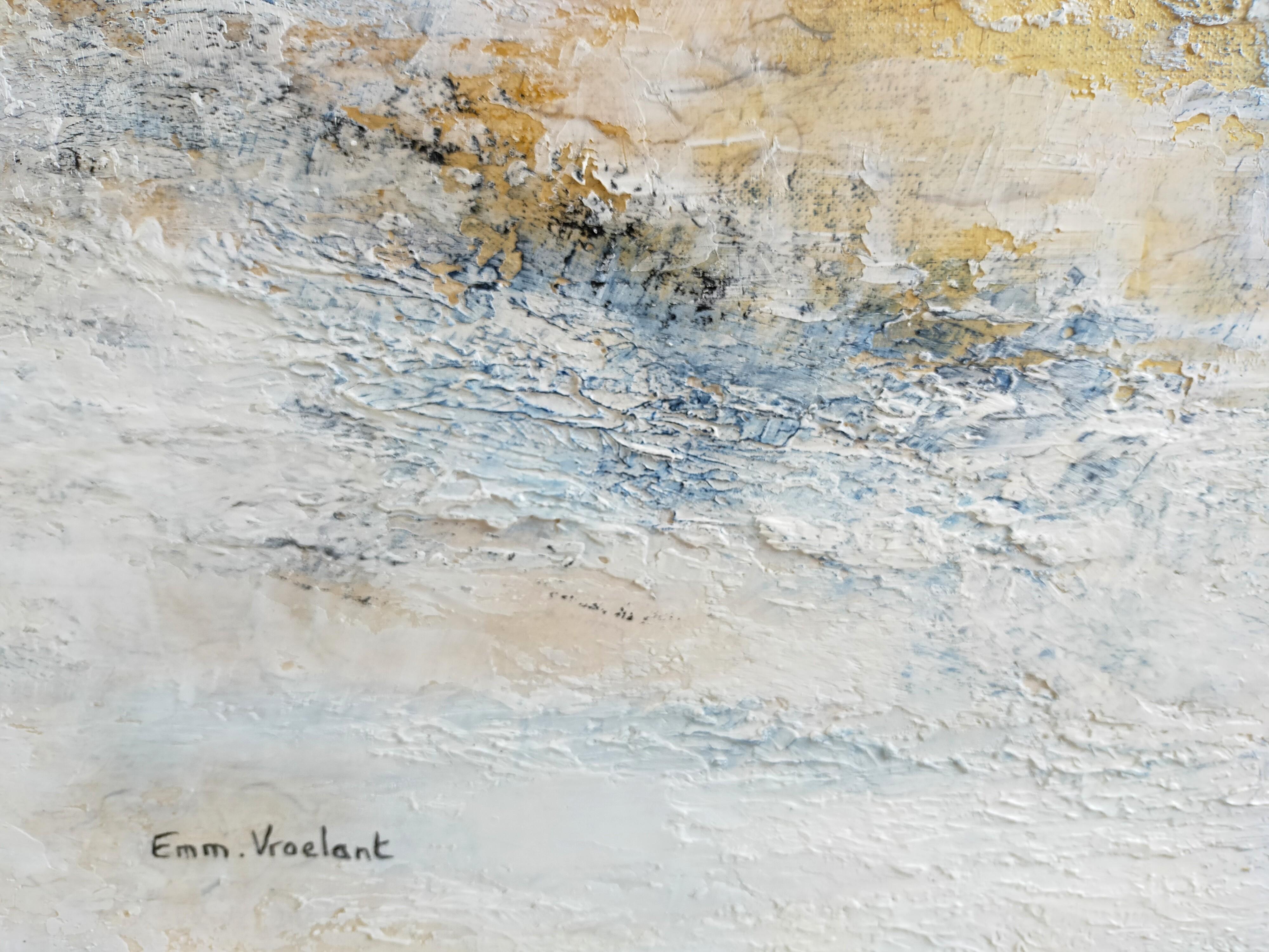 Born in 1952, Emmanuelle Vroelant has been living and working in Roscoff, Brittany since 2006. Despite a real attraction for artistic creation, her parents encouraged her to study. After graduating in psychology, she leaves to discover the world and it is far from the family weight that she gives life to her first child. She moved to Vanuatu where she met artist Juan Roderta and journalist Alphonso Colondro. These two men allow a real questioning of the artist who discovers the need to paint. On her return to Paris, she opened her first studio in 1981 and ended up exhibiting in 1985, 86, 88 and 89 at the Grand Palais Autumn Show, allowing her to start an international career.After two years of illness, Emmanuelle lost her inspiration and opened a psychoanalyst practice in Paris, where she practised art therapy. In 2006, she left her Parisian life to settle in Brittany, which allowed her to regain a creative energy. At the request of collector Michel Chamming’s, Emmanuelle successfully exhibited in Paris in 2009. During the inauguration of a New York gallery, she meets Jean-Claude Reumont who offers her to represent her for China. Today, Emmanuelle Vroelant’s works are present in the United States, China and France.