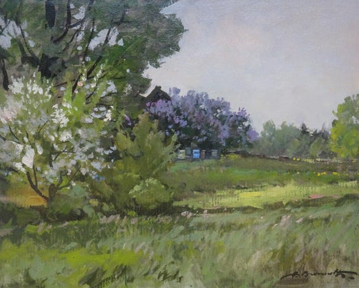 Countryside. 1950s, cardboard, oil, 26x37 cm