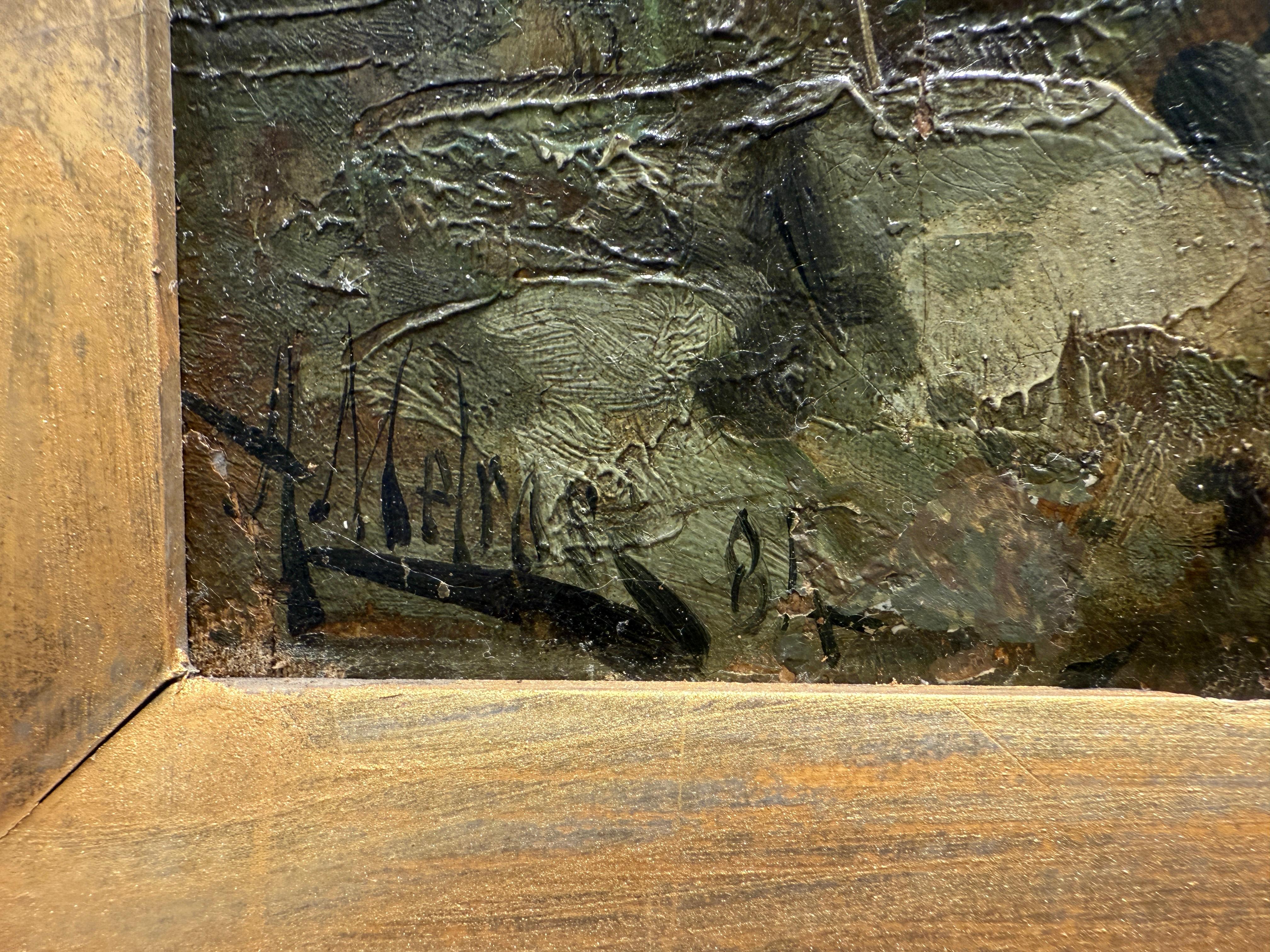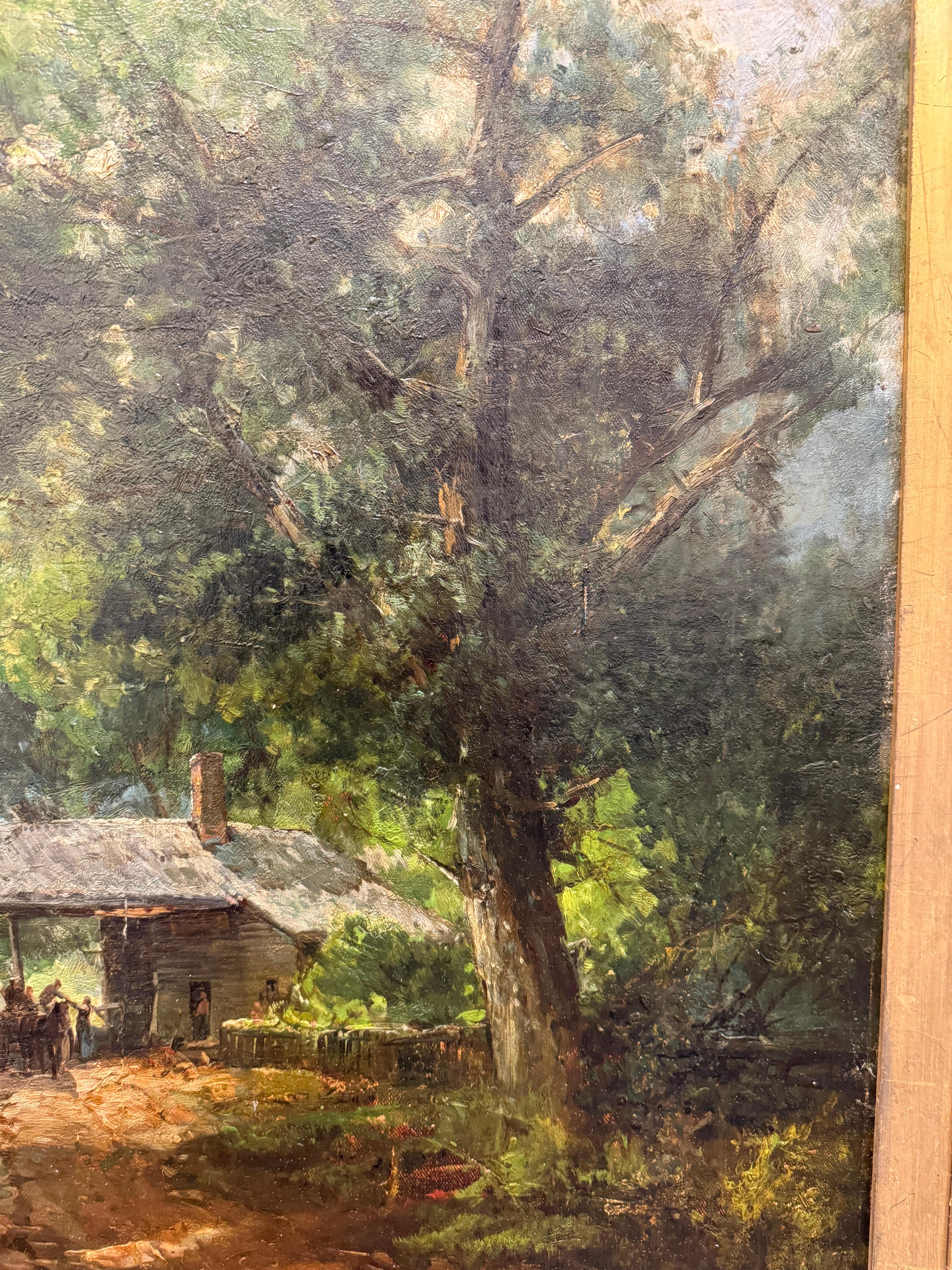 "Summer at the Farm," by Hudson River School painter James McDougal Hart (American, 1833-1915) is oil on canvas and measures 14 x 24 inches. It is signed and dated by Hart at the low...