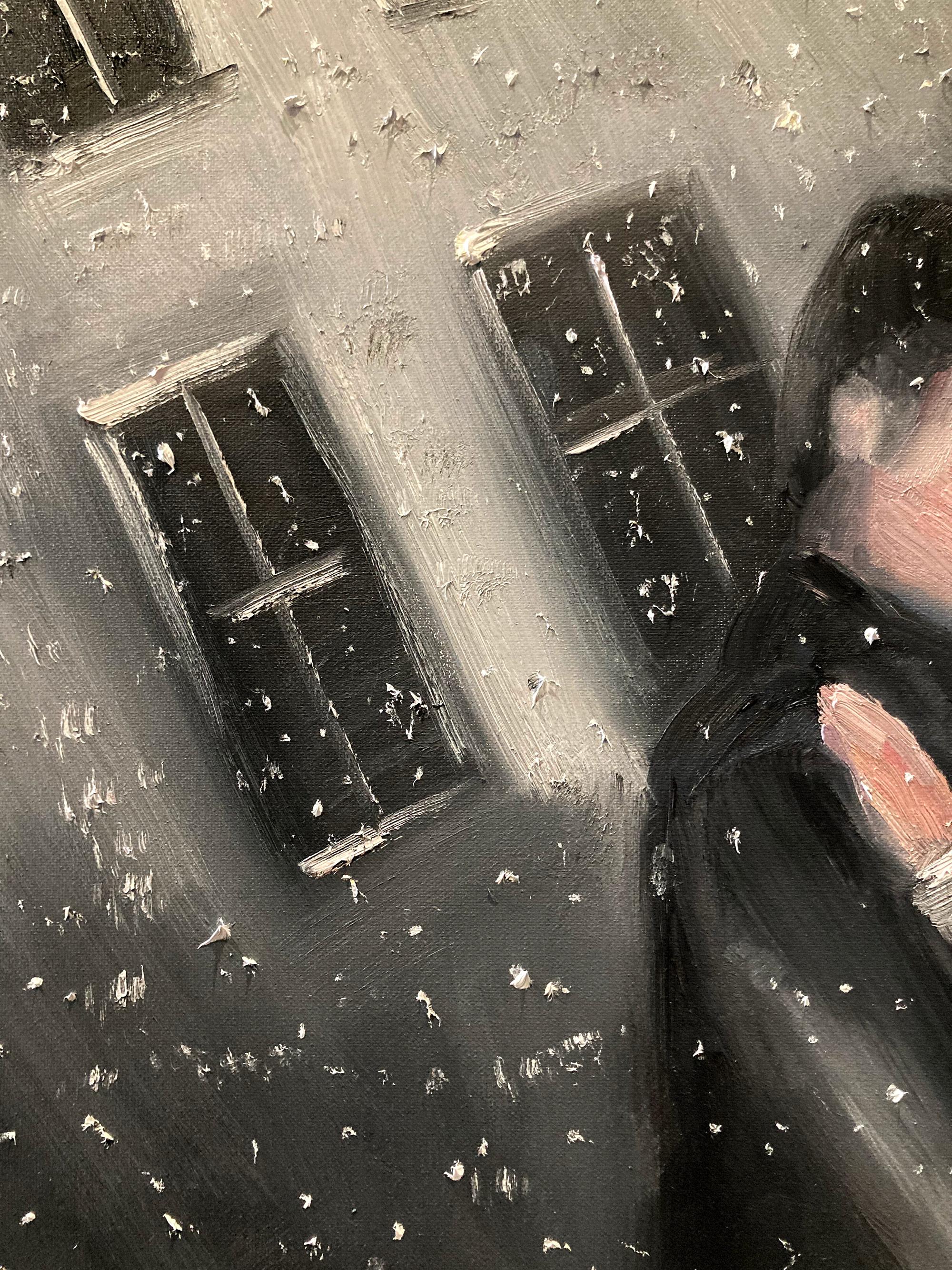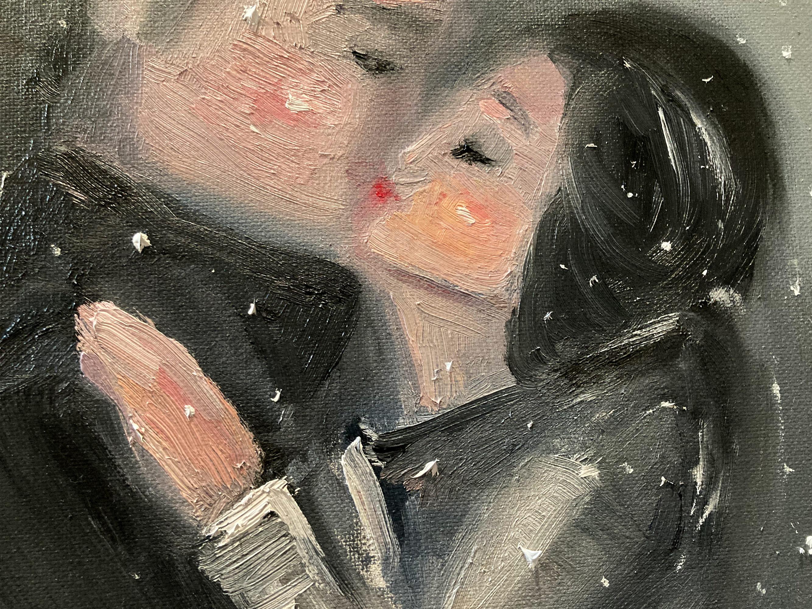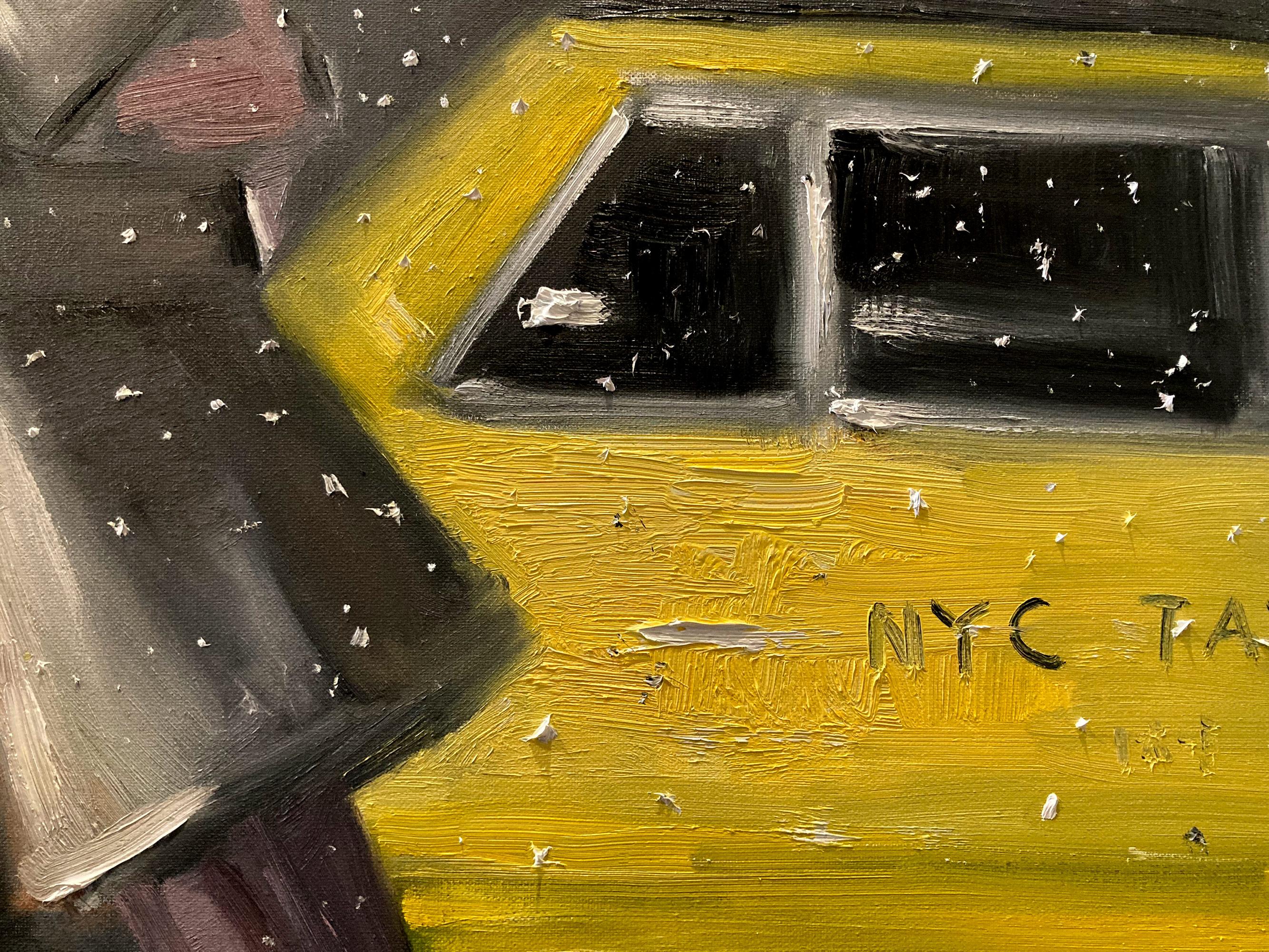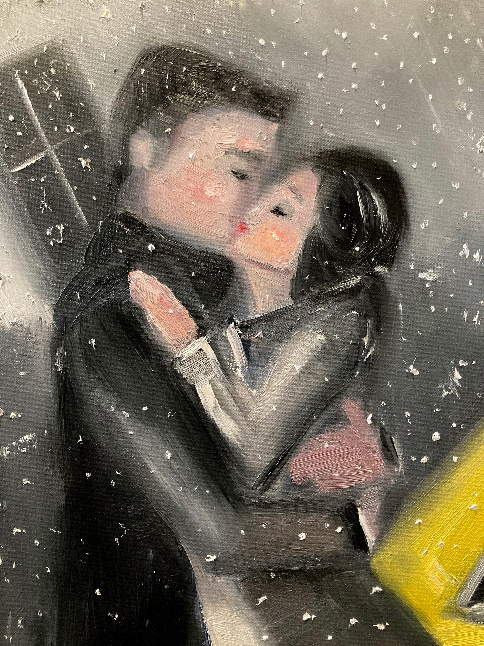Cindy Shaoul"The Kiss -NYC-" Figures in the Snow by New York Taxi Oil Painting on Canvas2025