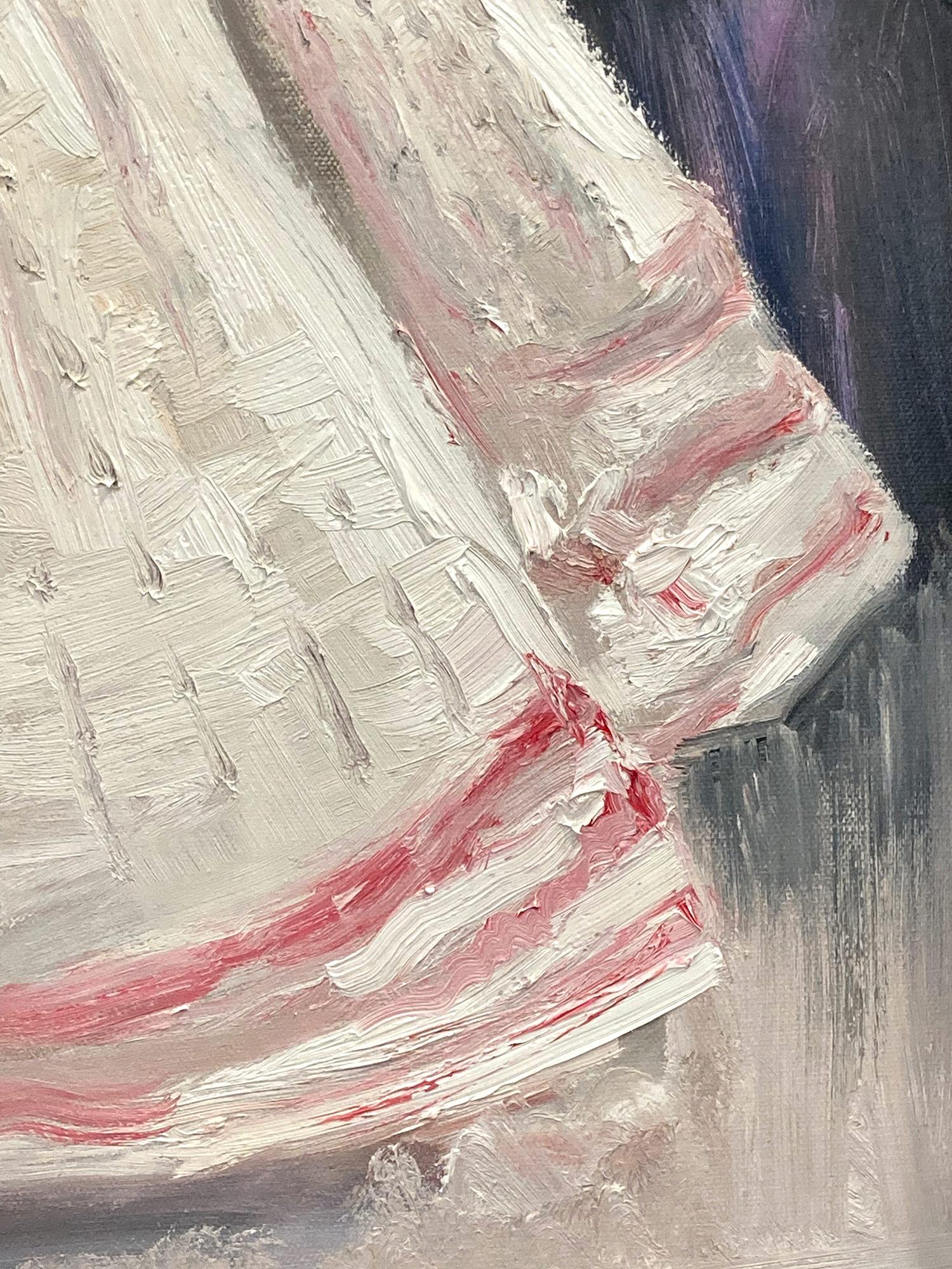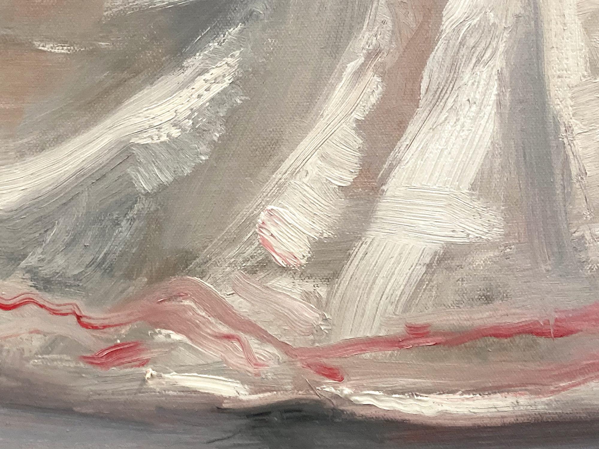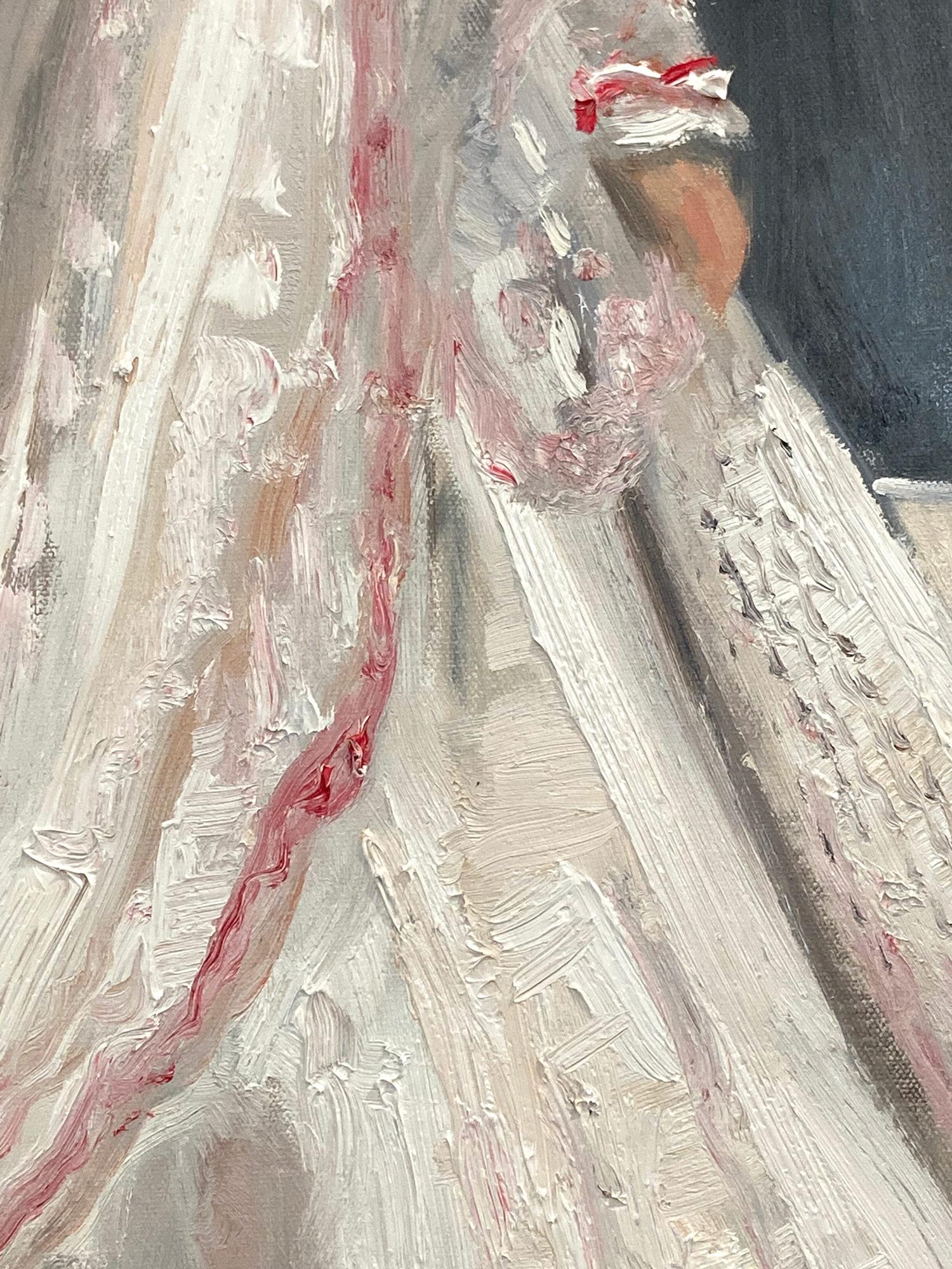 Shaoul would continue to explore new themes in her work. In 2018 she began the ‘Brides’ series which balances her love for impressionism with an abstract hand. While exploring the purity of the feminine form and the drama of French haute couture, she would create a dialogue between the figurative and the abstract. ‘Brides’ would give a new meaning of expression to her practice, and allowed nuances to emerge, demonstrating a whimsical expression of femininity and formality adding a stunning display of awe-inspiring grandeur to her work.