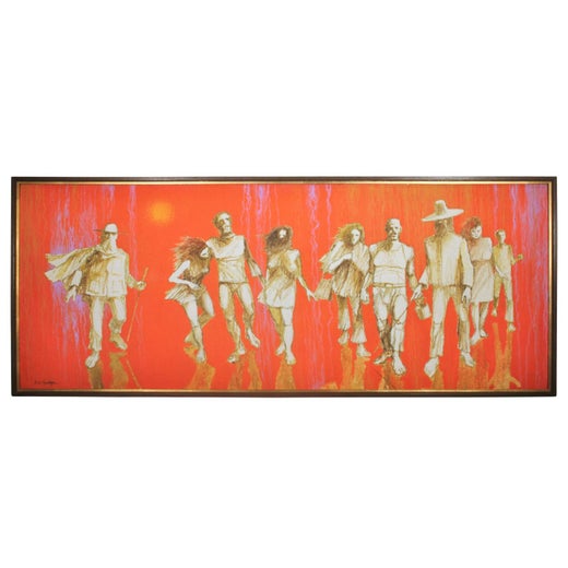 Erik Sprohge"Night Visions on the Rio Grande" Modern Dark Toned Abstract Figurative Triptych20th Century