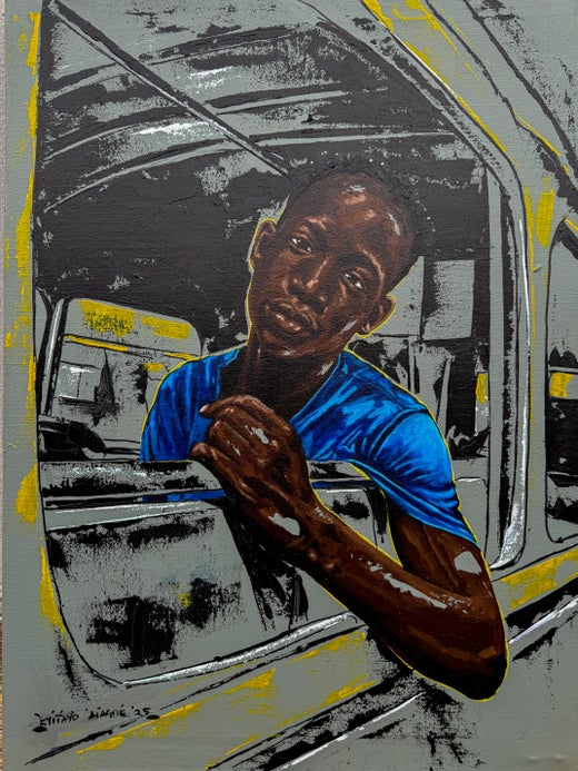 Joy Eyitayo Alagbe Is a mixed-media artist based in Ibadan, Nigeria. He was Born on June 14, 1997, in Ogbomosho, Oyo State Nigeria. Art has always been part of Eyitayo's life as he draws inspiration from the life experiences of the people surrounding him and the way we are as Africans. After studying at Emmanuel Alayande College of Education, where he gained a National Certificate of Education in Fine and Applied art, However, currently studying for a Degree in Fine and Applied Arts at the esteemed Obafemi Awolowo University.