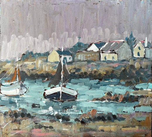 Fanch Lel’s paintings, primarily executed in oil and gouache, evoke the serenity and charm of the French countryside, with a particular emphasis on the region's coastal and rural beauty. His works often highlight iconic landmarks such as Mont Saint-Michel and capture the essence of Breton culture with his portrayals of the region’s people and customs. Lel's self-taught, plein air approach allows for dynamic compositions that reflect the atmospheric light and textures of the region, giving his pieces a timeless appeal. His choice of soft, muted colors and rich textures brings a sense of nostalgia and quietude to each painting, making them a perfect addition to collections that appreciate mid-century French art. A member of the Société des Artistes Indépendants and a Knight of the Palmes Académiques, Fanch Lel's works have been featured in numerous exhibitions across France, including in Paris, Avranches, Dinard, and Pont-Aven, to name a few. His art has been highly sought after by collectors for decades.