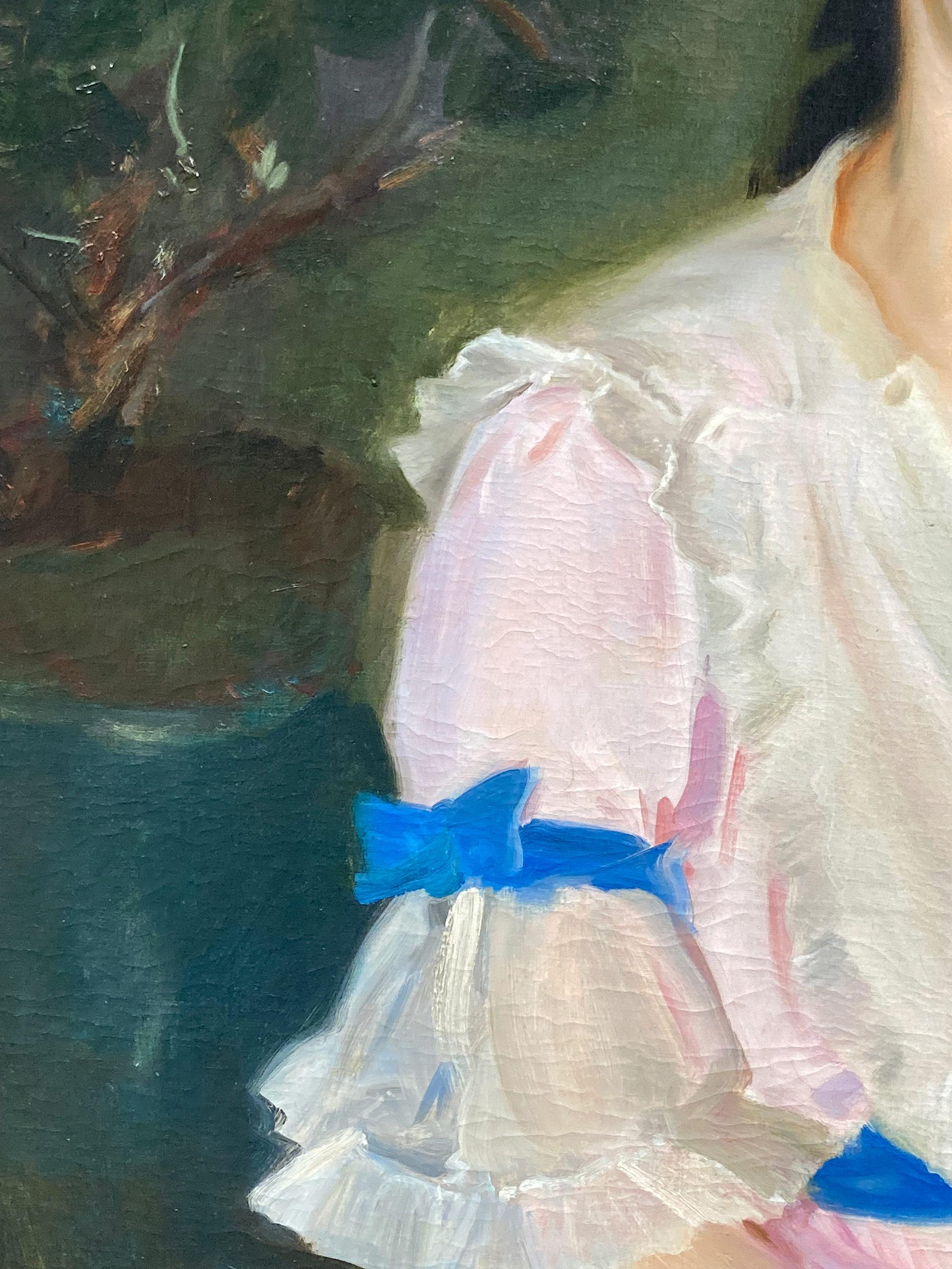 "Little Girl in White Dress" Impressionist Girl Portrait Oil Painting on Canvas
