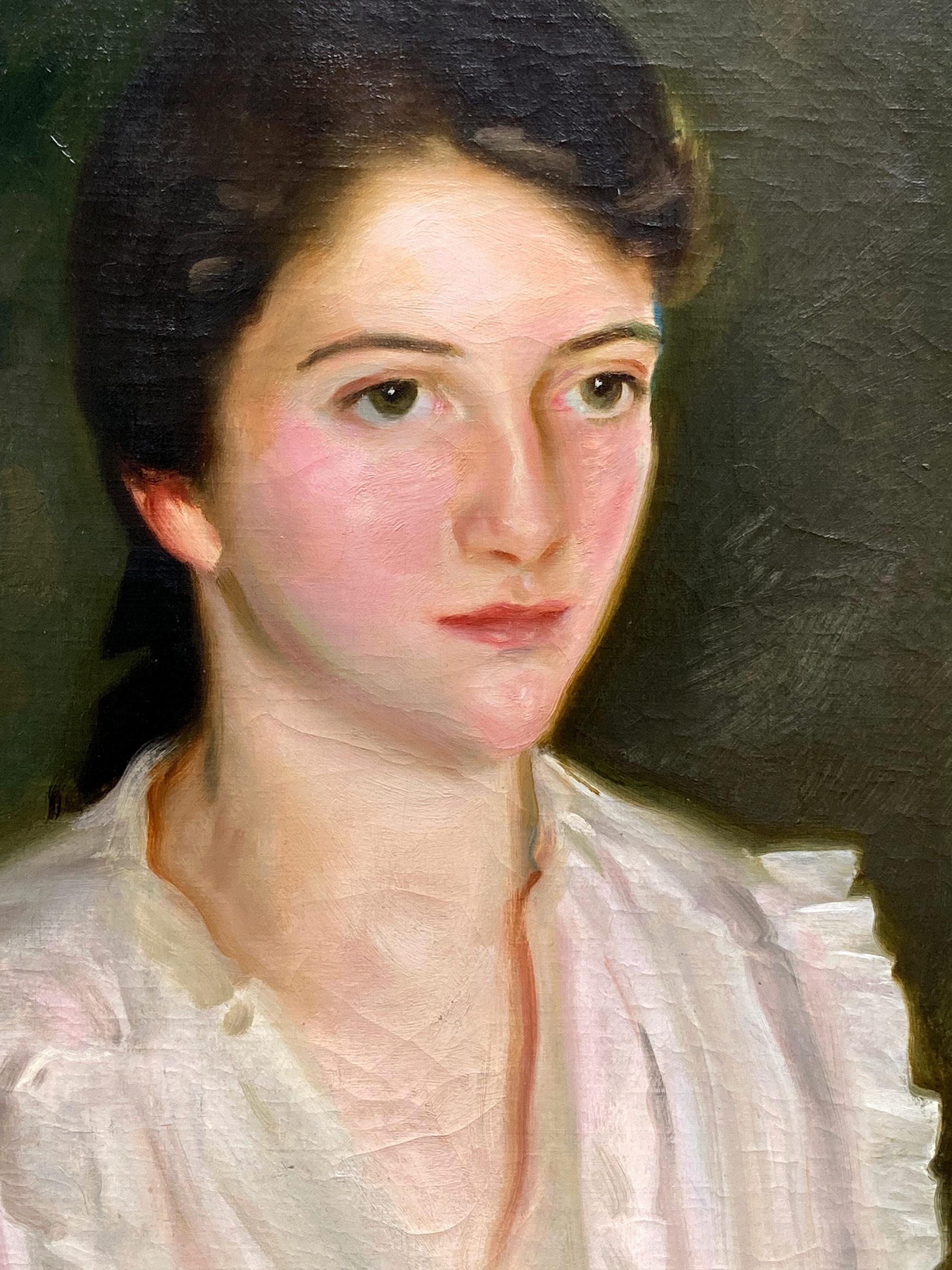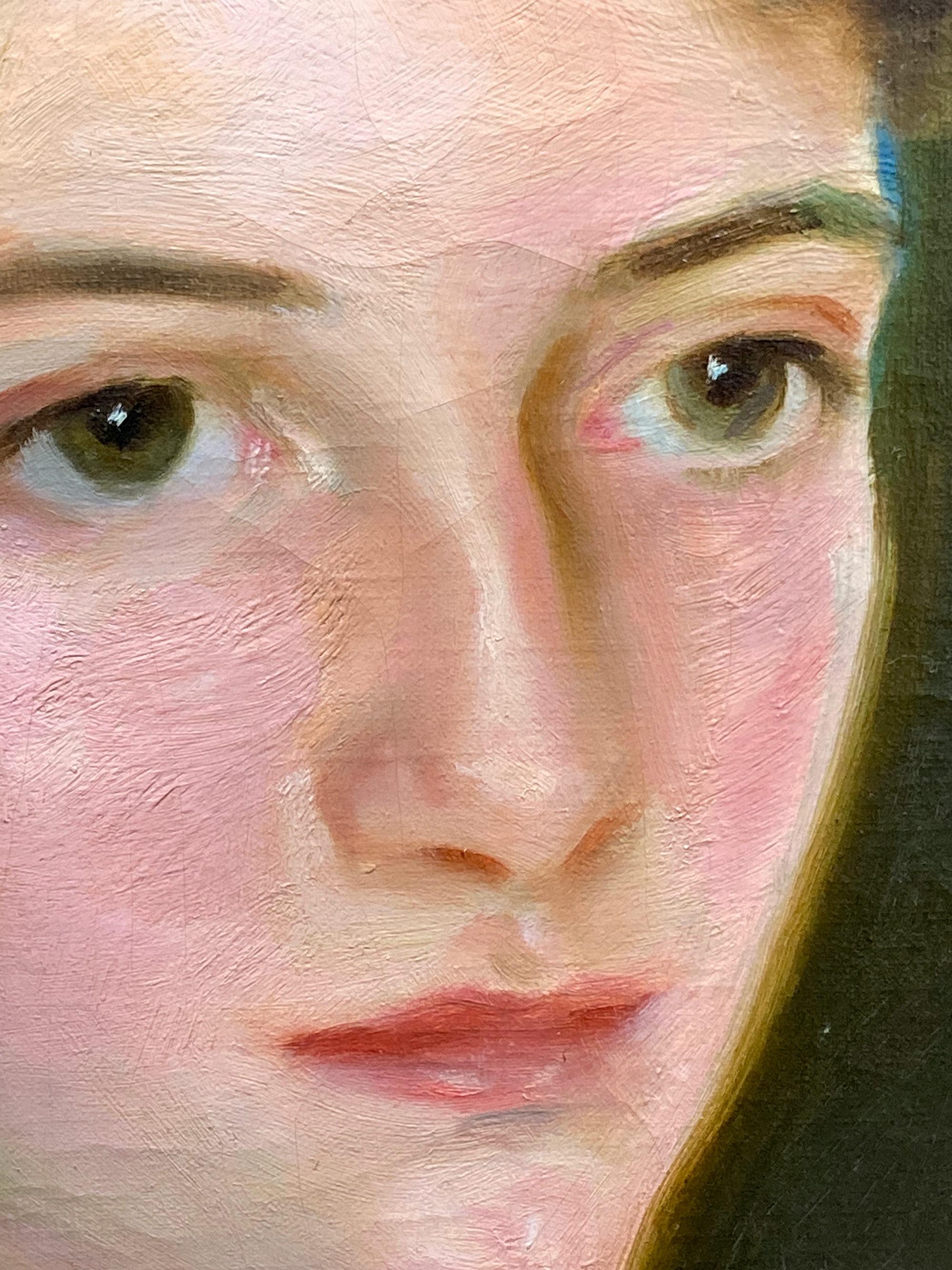 This lovely British Art Deco portrait oil painting is by noted portrait artist James Penniston Barraclough. It was painted in 1923 and is signed and dated lower right. The compositio...