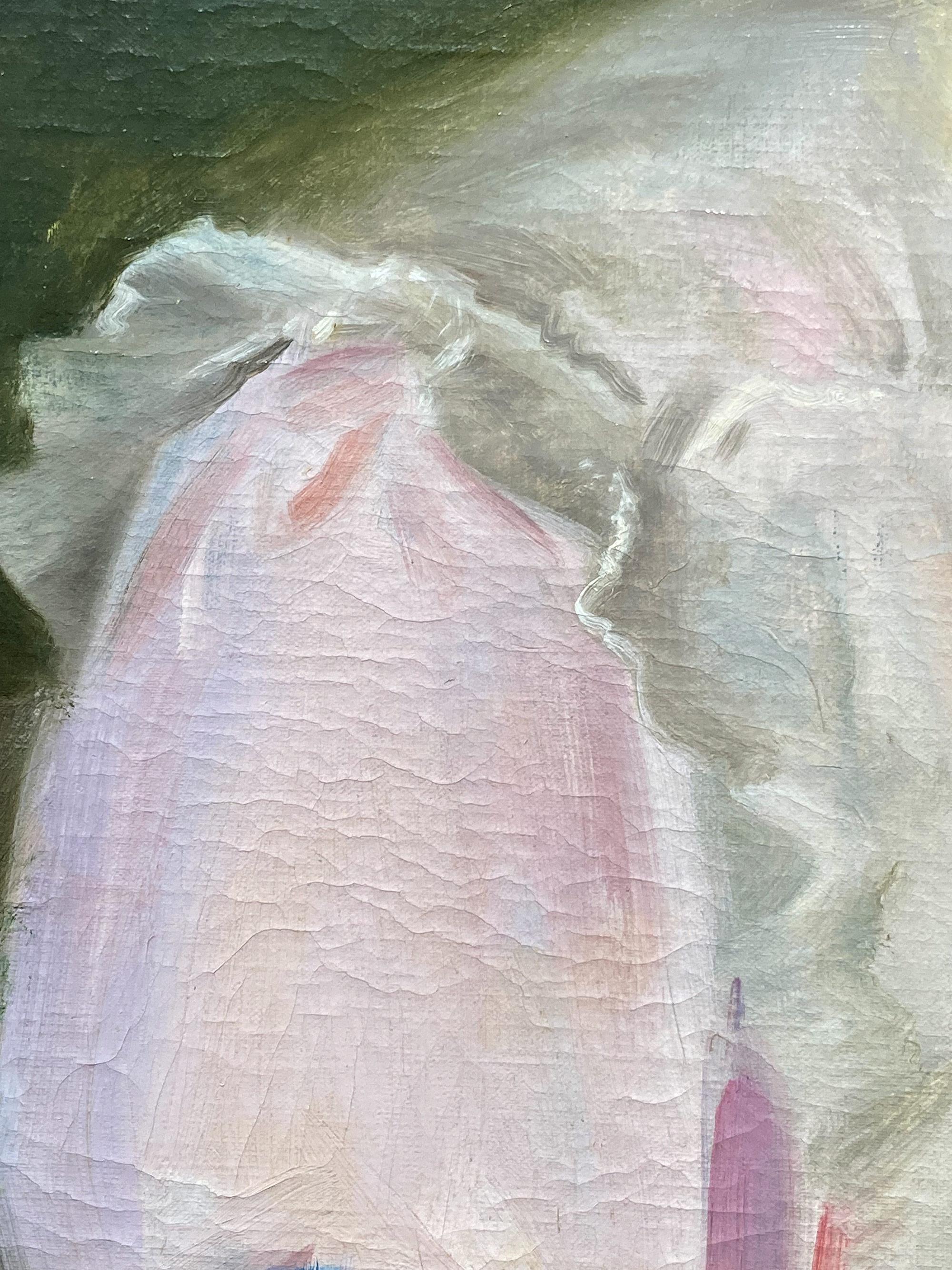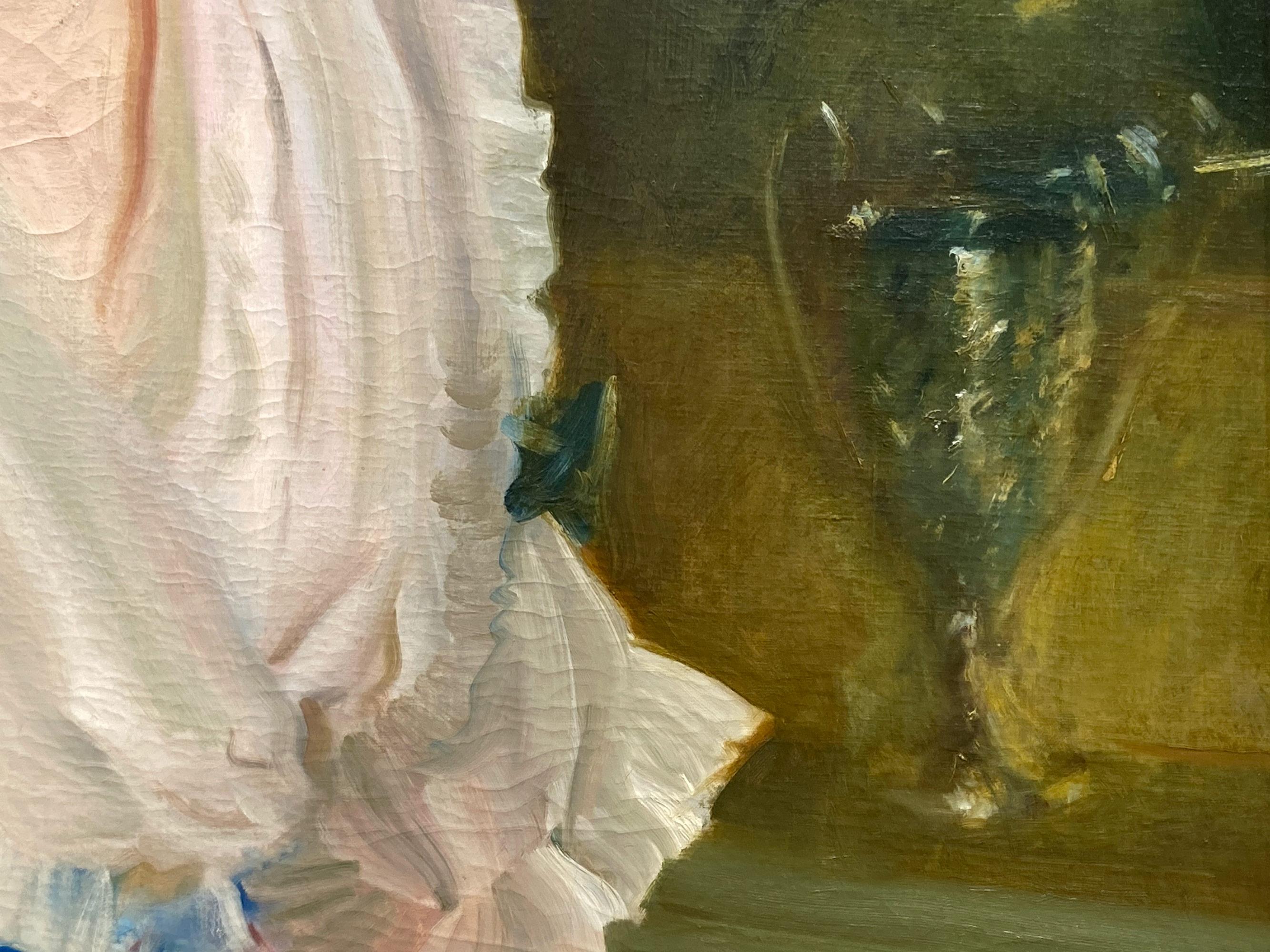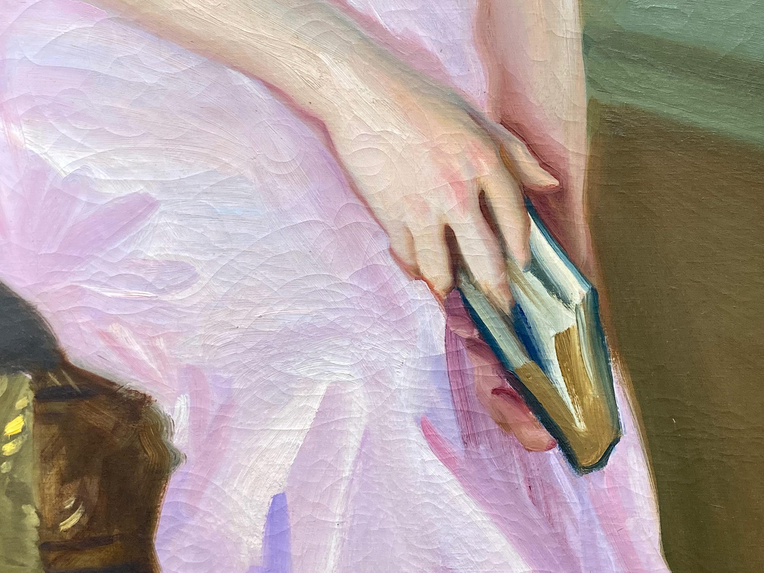 Portrait of a Lady in Pink - Victorian Impressionist art female oil painting