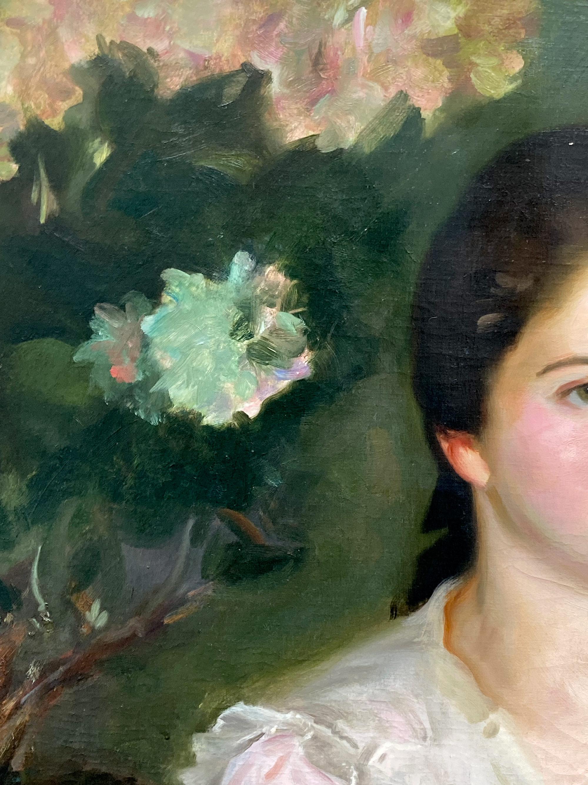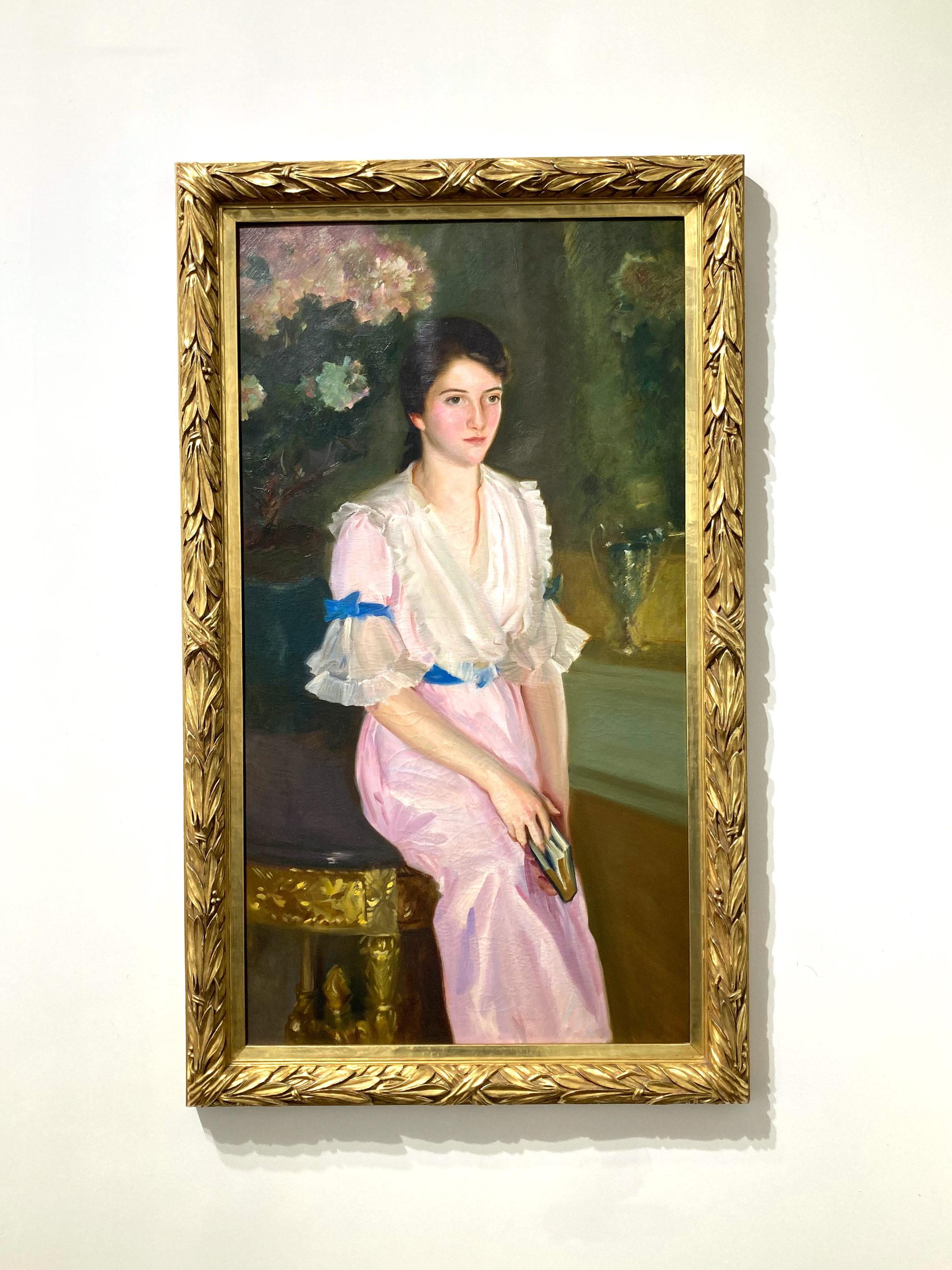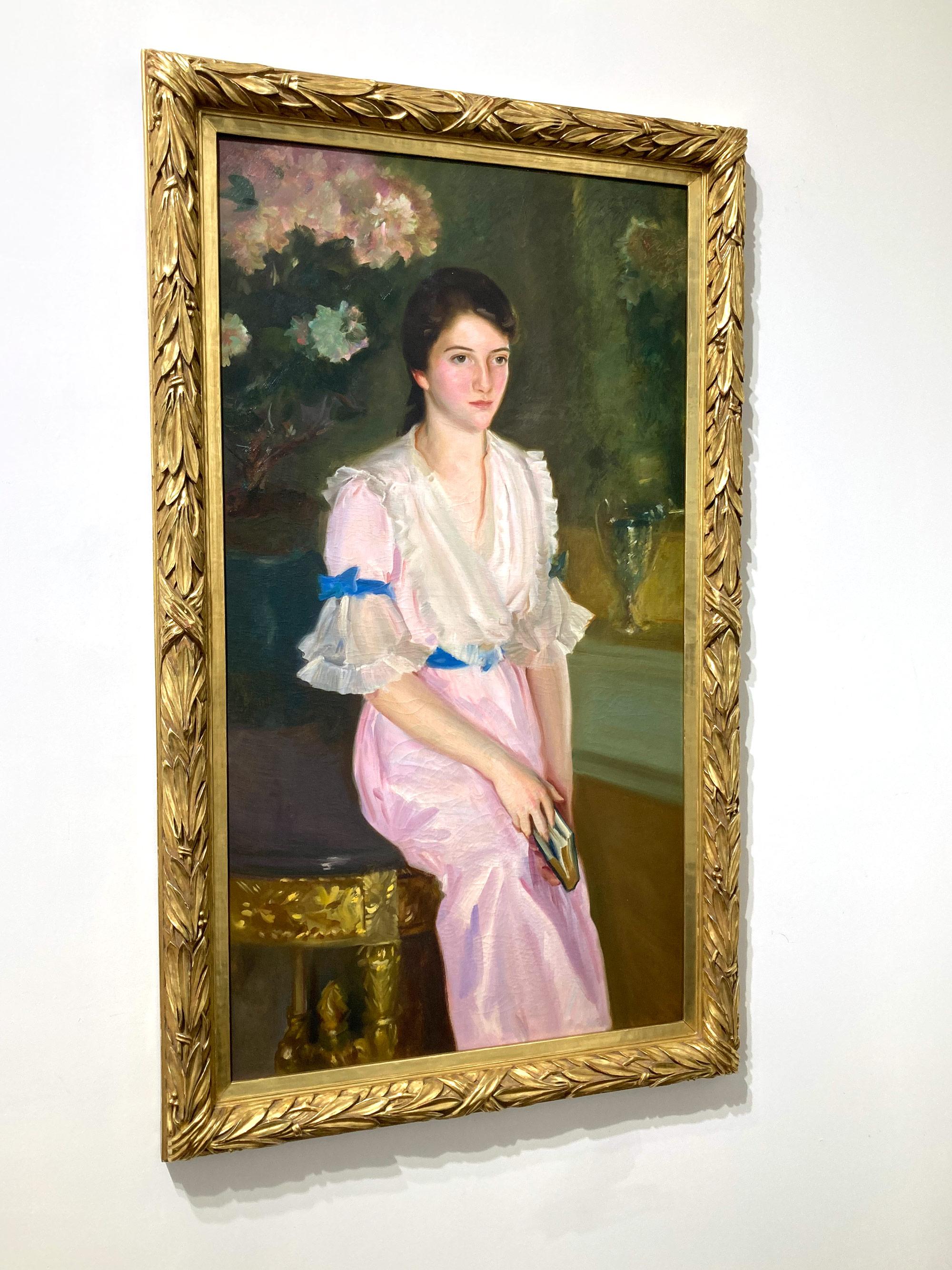 Portrait of a Lady in Pink - Victorian Impressionist art female oil painting