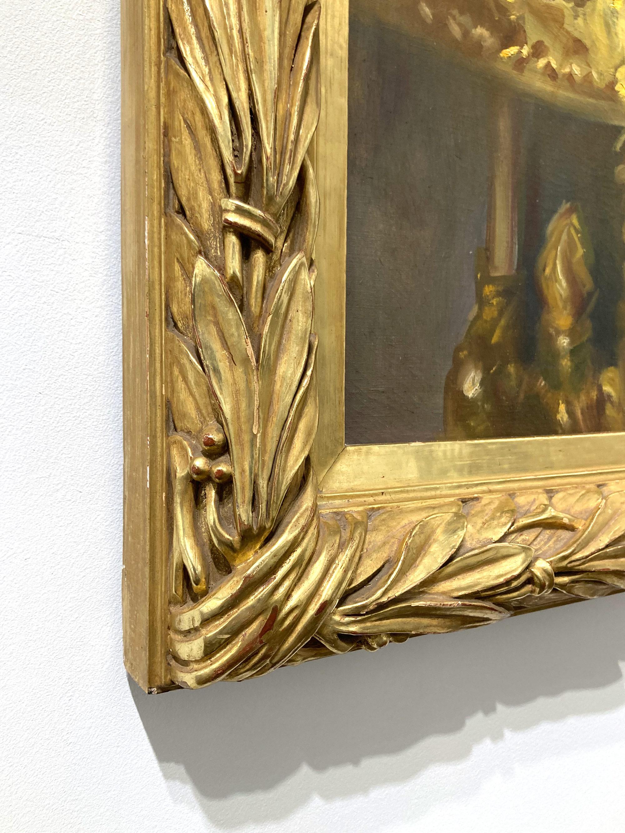 - Condition:The painting is in overall good condition for the time period with stabilized craquelure throughout, the antique frame shows some scuffs, chips, and minor imperfections in line with the manufacturing period (please see listing pictures for details).