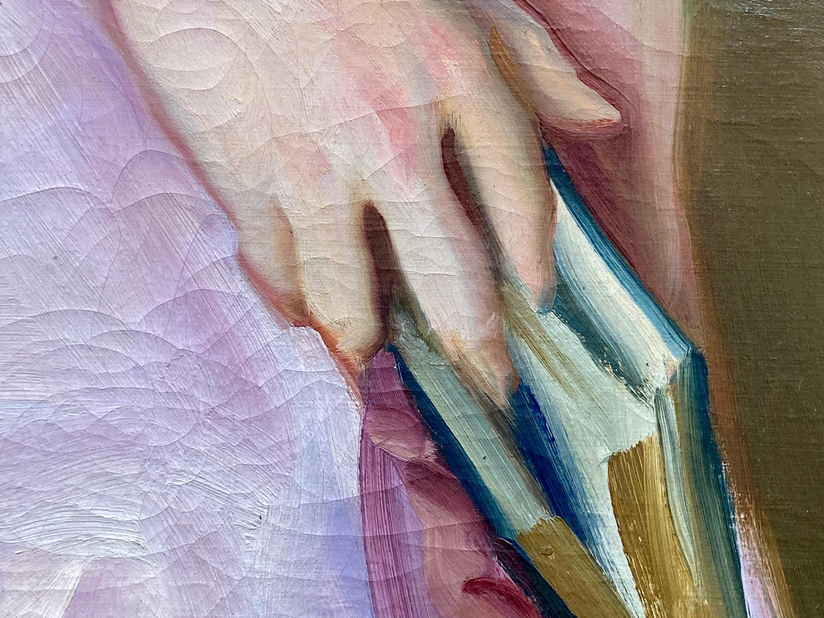 Portrait of a Lady in Pink Dress - British 1920's Art Deco portrait oil painting