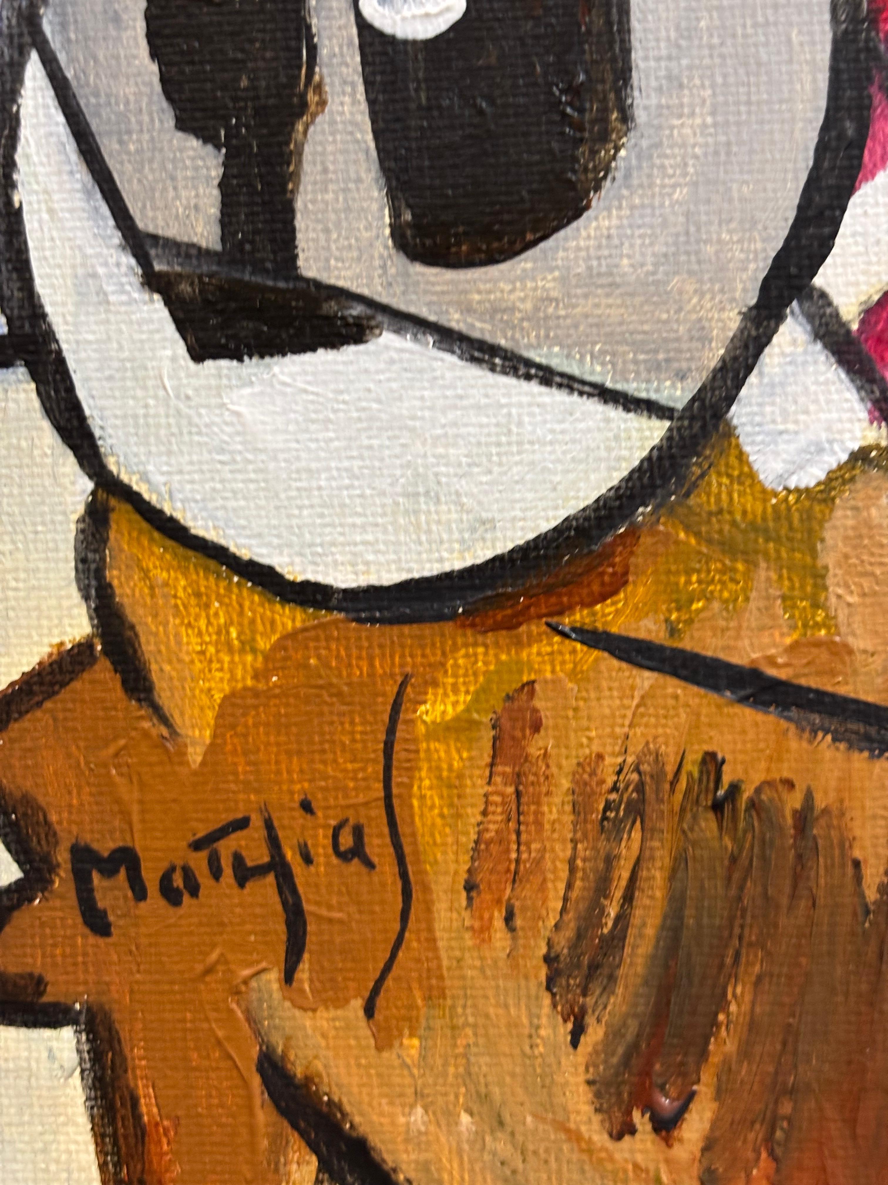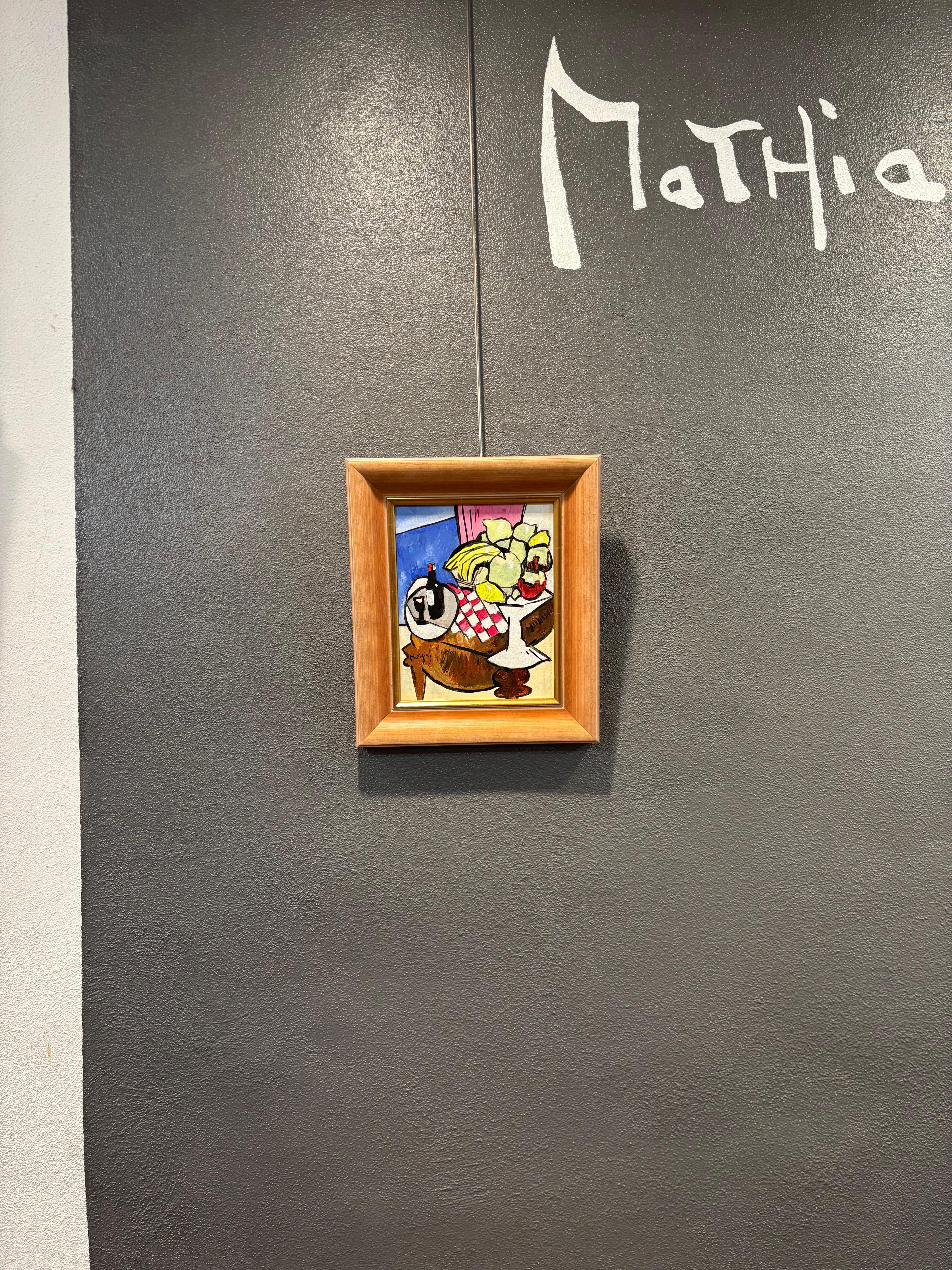 Signed lower left, this work reflects Mathias’s ability to turn everyday objects into striking compositions of color, balance, and narrative.