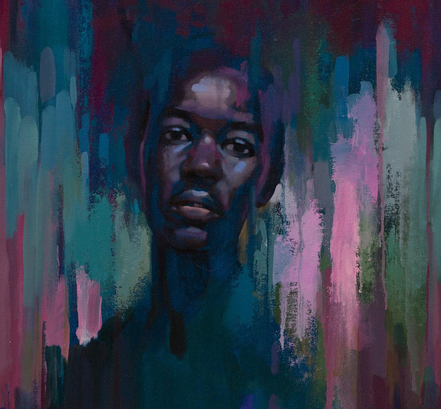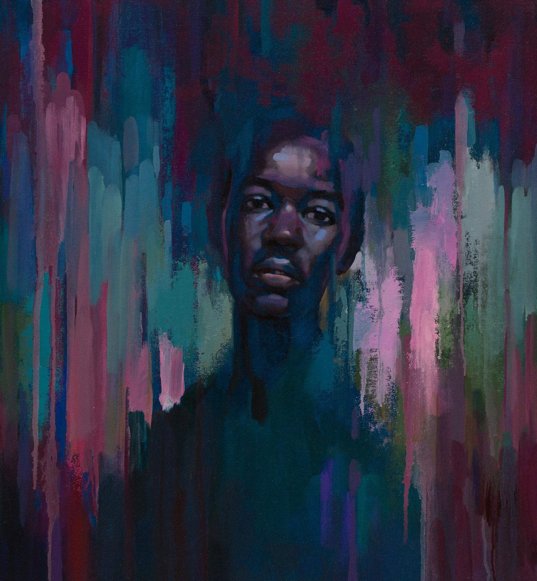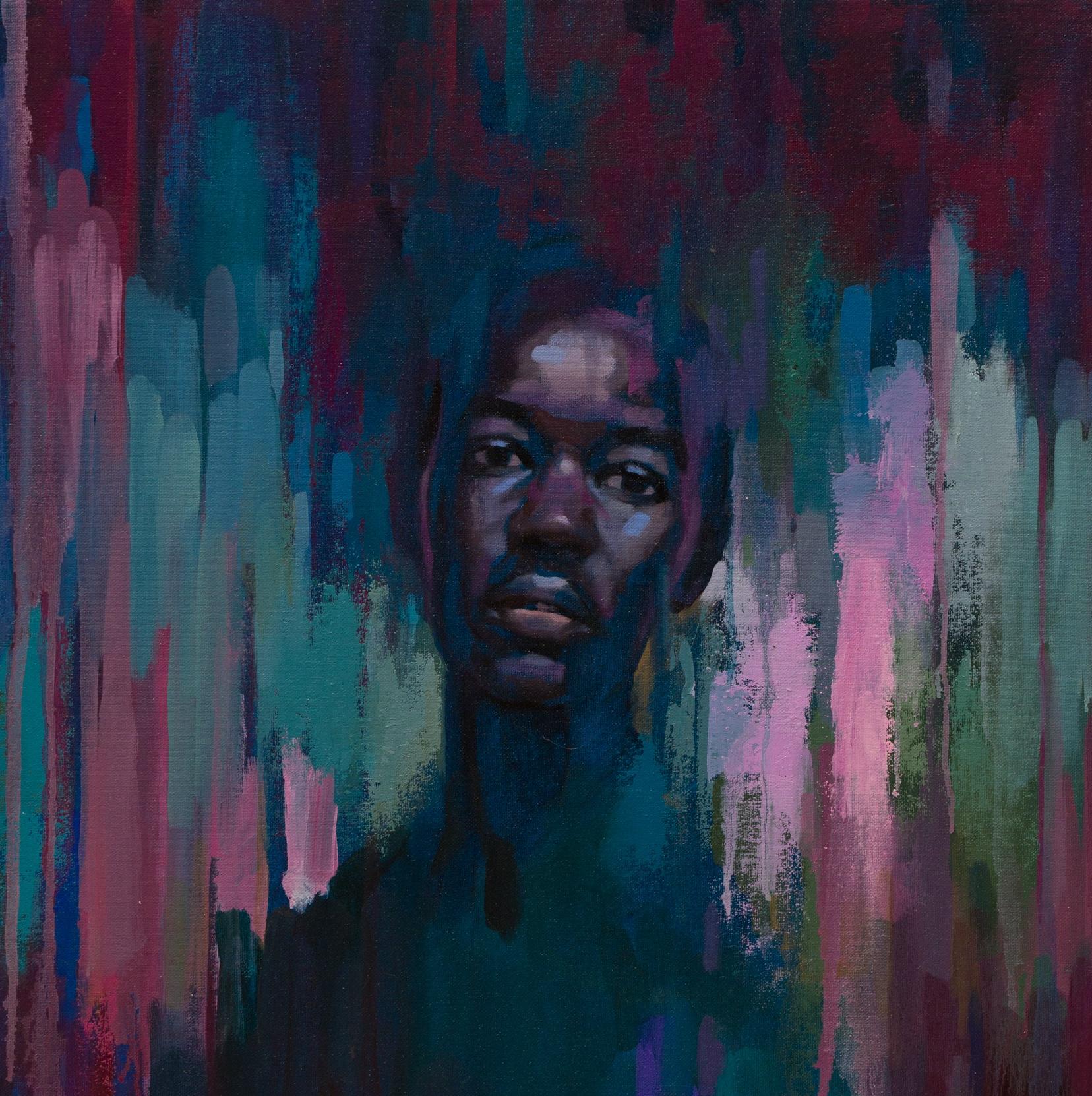 Katherine Fraser"As I Am" Expressive Male Portrait Floating in Red and Purple Colorscape2024