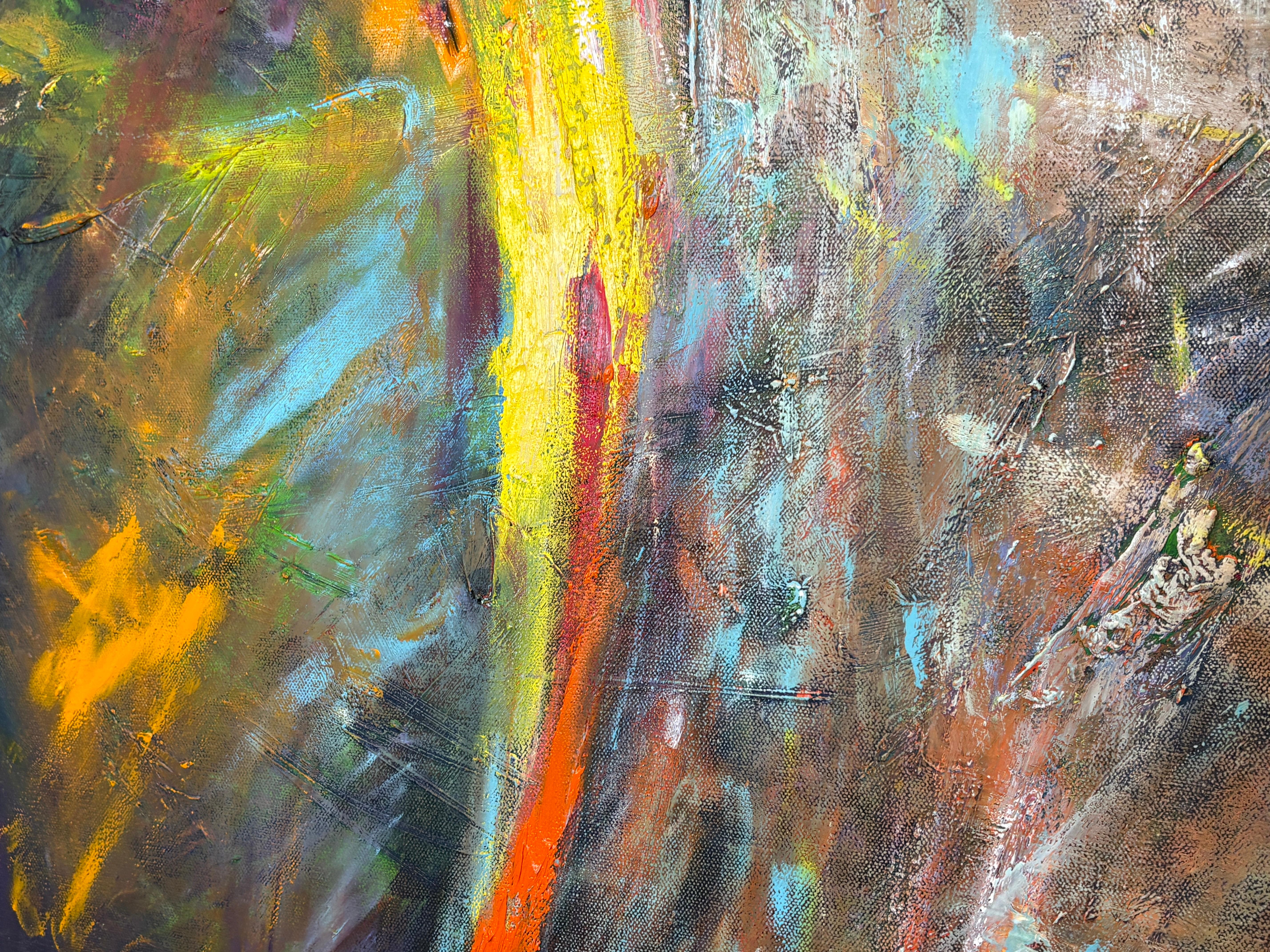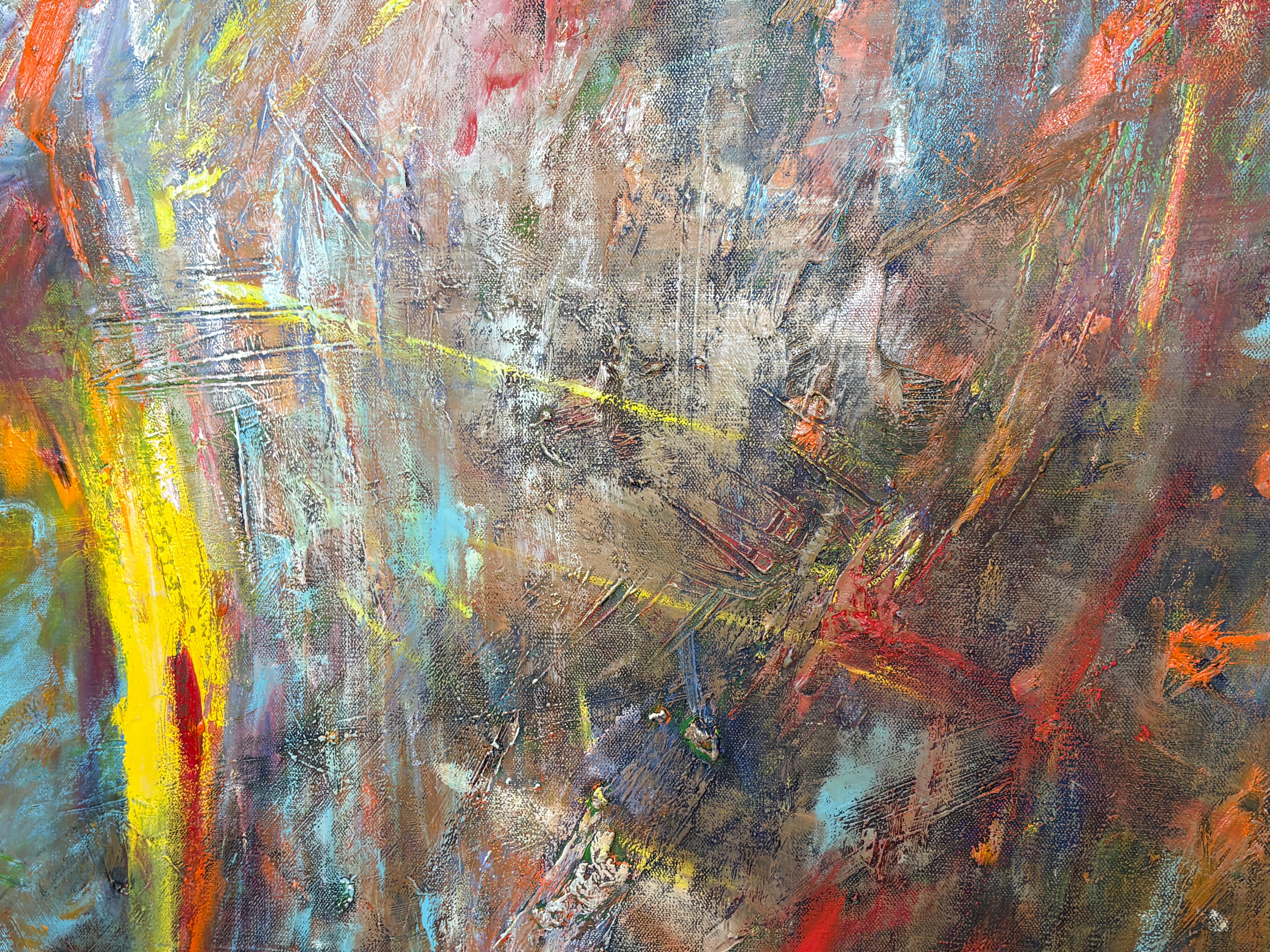 Working primarily with complementary colors, her paintings are lively and raw, with color vibrating throughout from layers deep within the work. Kristy has been a professional abstract artist for many years. Her artwork hangs in the homes of those who appreciate art that reflects expressive motion and color with thick layers of texture and meaning.