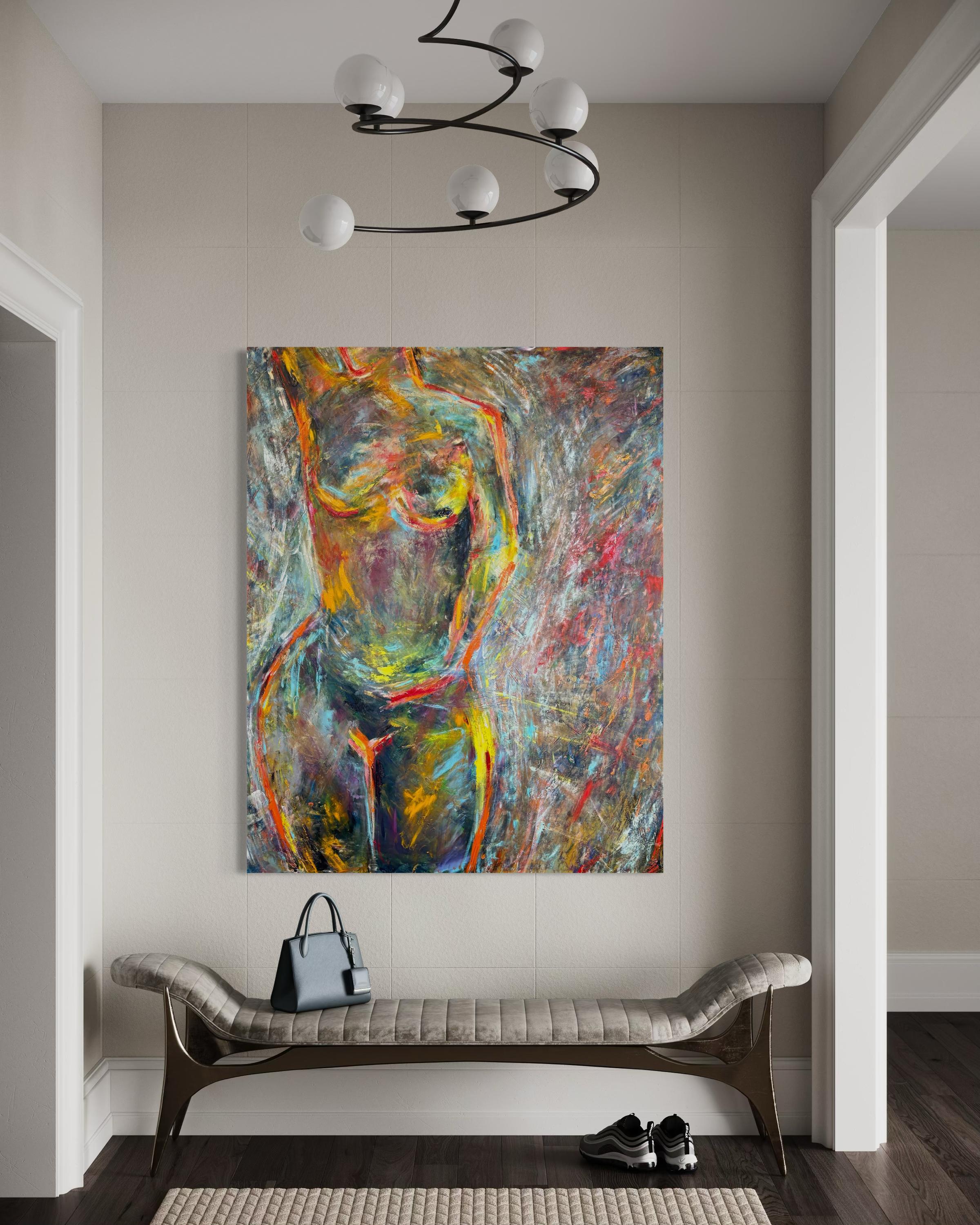 Items Similar to "Untitled" - Colorful Contemporary Large Figurative Nude Abstract Oil Painting