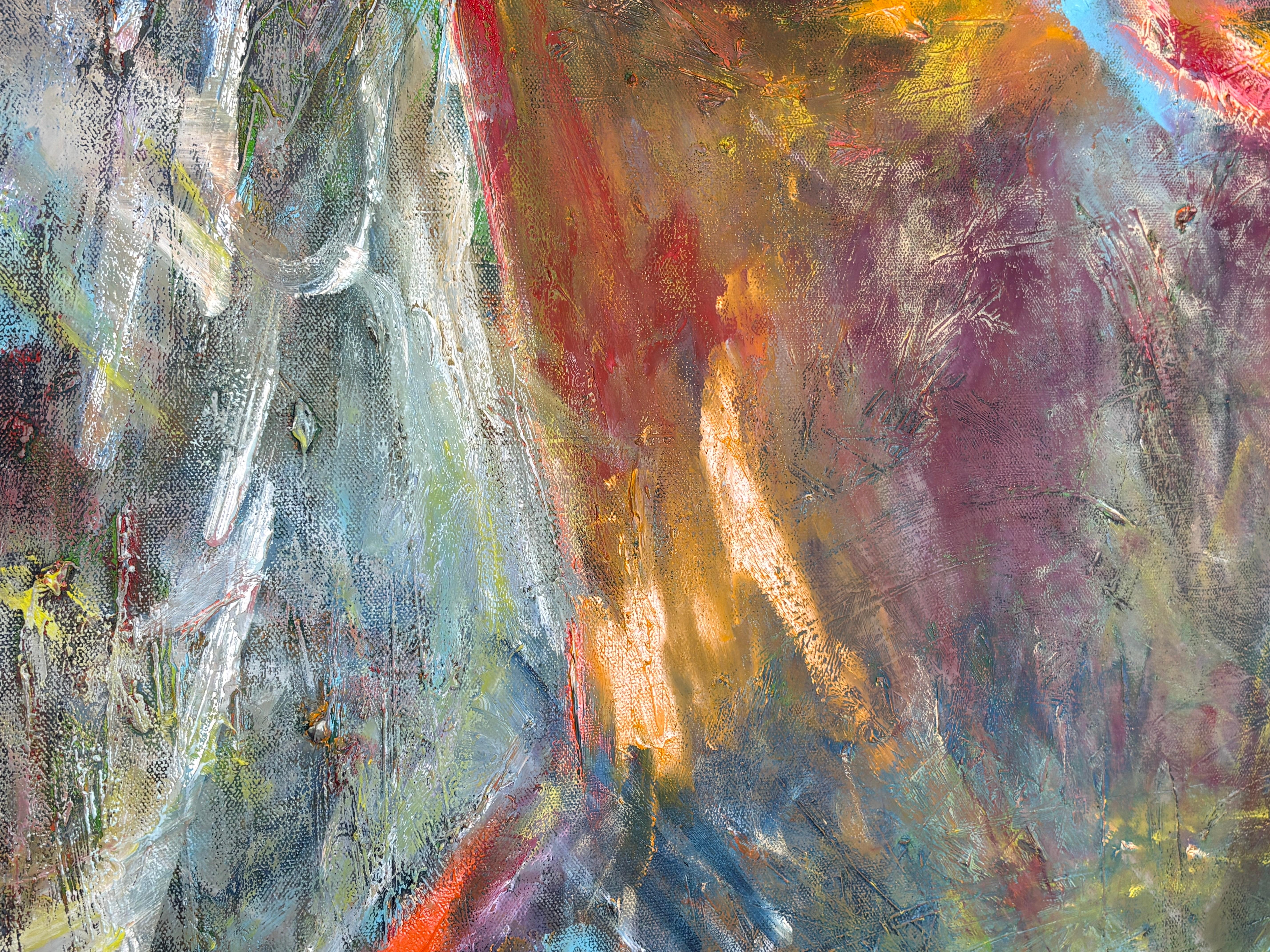 a complex, almost tactile surface, inviting the viewer to dive into the painting and