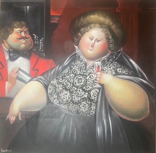 "I was born in Colombia, South America and I arrived in New York City on November 23, 1963, the same day President Kennedy was assassinated. My dream was to be a working artist and live off the proceeds from my paintings. It was very difficult to be accepted, so I took a job designing stained glass windows, mosaics and sculptures and I painted in my personal time. Now, for many years, I am able to concentrate totally on my painting. I live on a farm in upstate New York and my studio is in a converted barn, along with my gallery. It is a great space to exhibit my paintings to prospective buyers. I have exhibited in this country and overseas, with shows in Paris, London, Venice, Belgium, Japan, and South America. My paintings always have a touch of humor." - Leandro Velasco