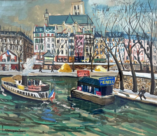 About the Artist: After the devastation of the First World War, Lucien Génin (1894 - 1953) left his provincial home in the autumn of 1919 to find his fortune among the lively Parisians in the heart of Montmartre. Génin befriended the painters Frank Will, Gen Paul, Émile Boyer, Marcel Leprin, as well as Max Jacob and Dorival. Not concerning himself with producing "art", he beautifully captured the spirit of Paris between the wars while enjoying a truly Bohemian existence. Génin's works, in all their forms, perfectly convey the eclectic and friendly characters of the city. More than a painter of Paris, Génin is a painter of Parisians, of the passion that animates all his characters in the big city. He painted them in the alleys of Montmartre, dining on Place du Tertre, singing in the Lapain Agile, or in a car passing by on the grands boulevards. He exhibited his works at the Salon d'Automne in 1930. Those paintings were witness to the end of the Roaring Twenties and the beginning of the world depression of 1929. The art critics stated that he created intelligent, composed, colourful, sensitive, skilful, delicate, humorous and witty works of art. A painting by Lucien Génin was awarded an important prize from the Art Institute of Chicago in 1932. When they do become available, Génin's artworks inspire spirited bidding at international auction houses as values increase along with his stature in the art world. This gallery holds several works by Génin on this platform. Please feel free to make enquiries.