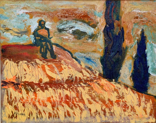 View All"The peasant" - Horizontal painting with figure and landscape.