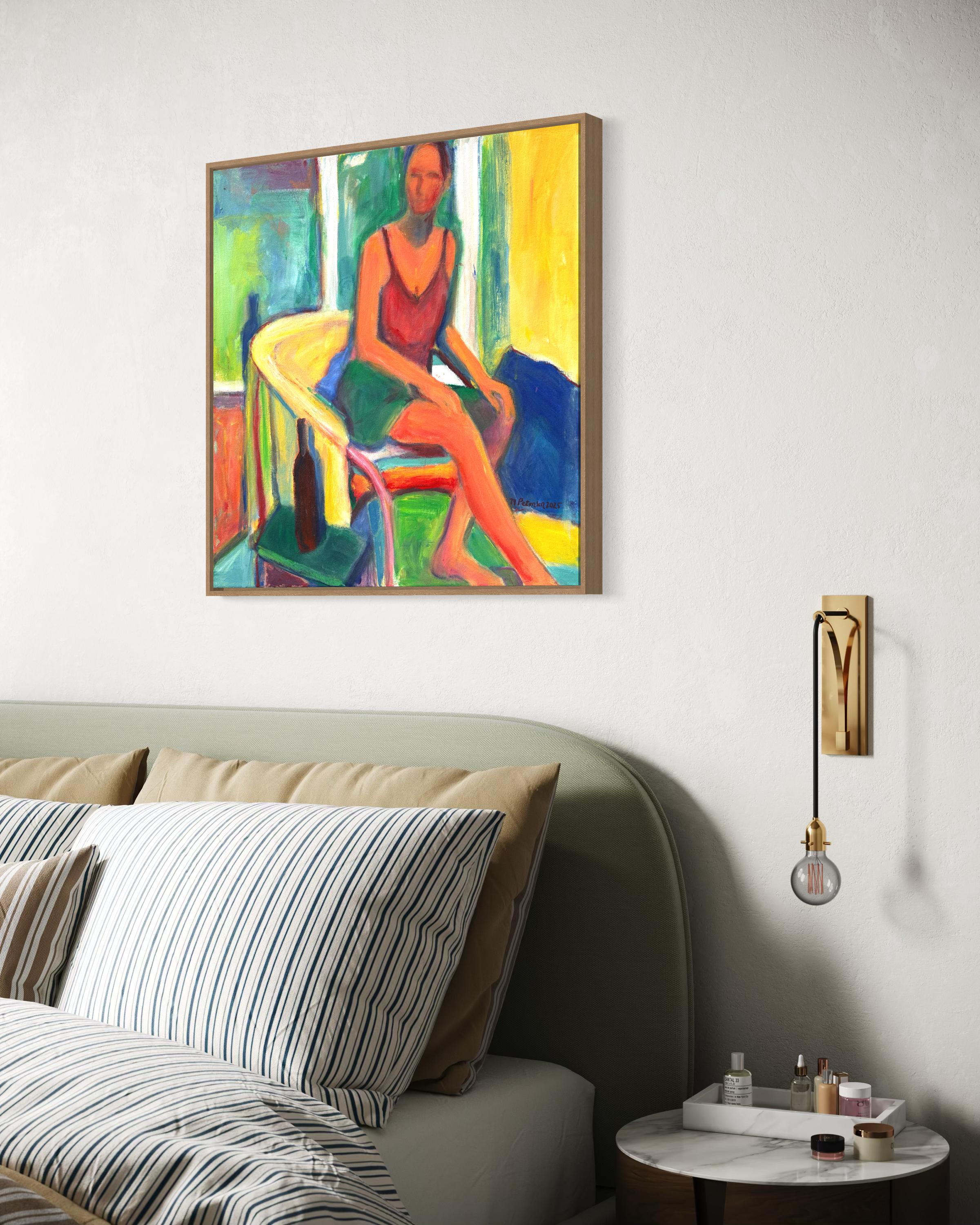 Maura Petersen"Awakening" - Bright Colorful Textural Figurative Woman Sitting Abstract Artwork2025