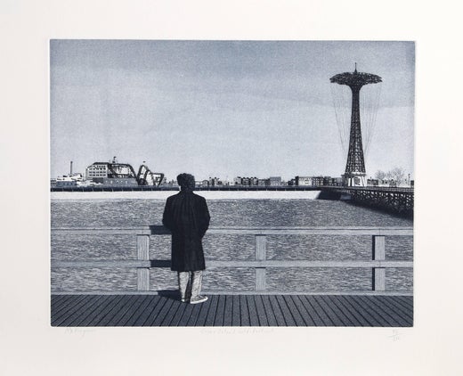 Max Ferguson is a contemporary American artist born in New York City in 1959, known for his meticulously rendered, realistic oil paintings of urban scenes. Ferguson's work often captures vanishing aspects of New York City, including its subways, Coney Island, and historic architecture, as a way to preserve them for future generations. His art is deeply personal, often featuring himself and his father as subjects, and is known for its quiet, introspective quality. Ferguson's paintings are included in numerous prominent public and private collections, including the Metropolitan Museum of Art, the British Museum, and the Crystal Bridges Museum of American Art.