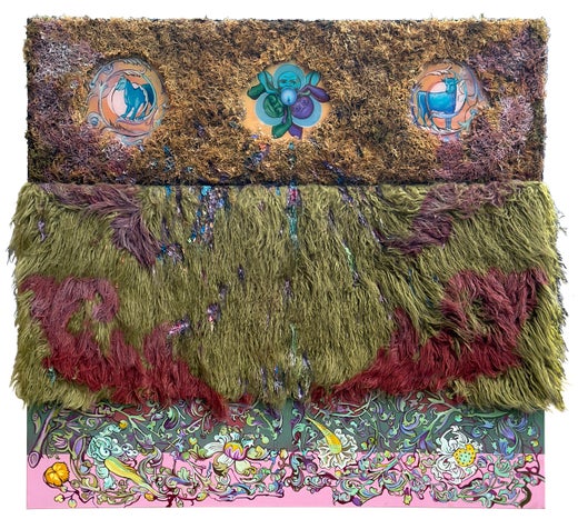 "Solar Plexus" by Denver artist and professor Melissa Furness showcases the artist's signature layering techniques. This particular work is from the 2022 series "Romantic Overgrowth....