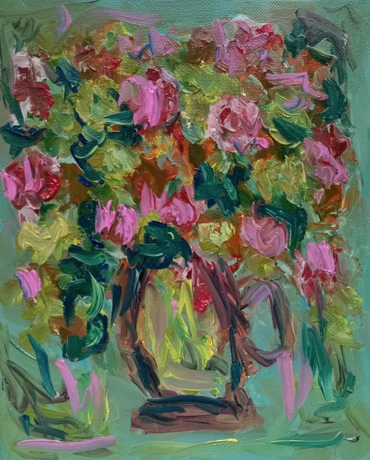 She paints quickly and spontaneously, capturing what she describes as “the emotional state between breath and thought.” Each work resonates as a visual echo of something deeply felt—unpolished, authentic, and free.
