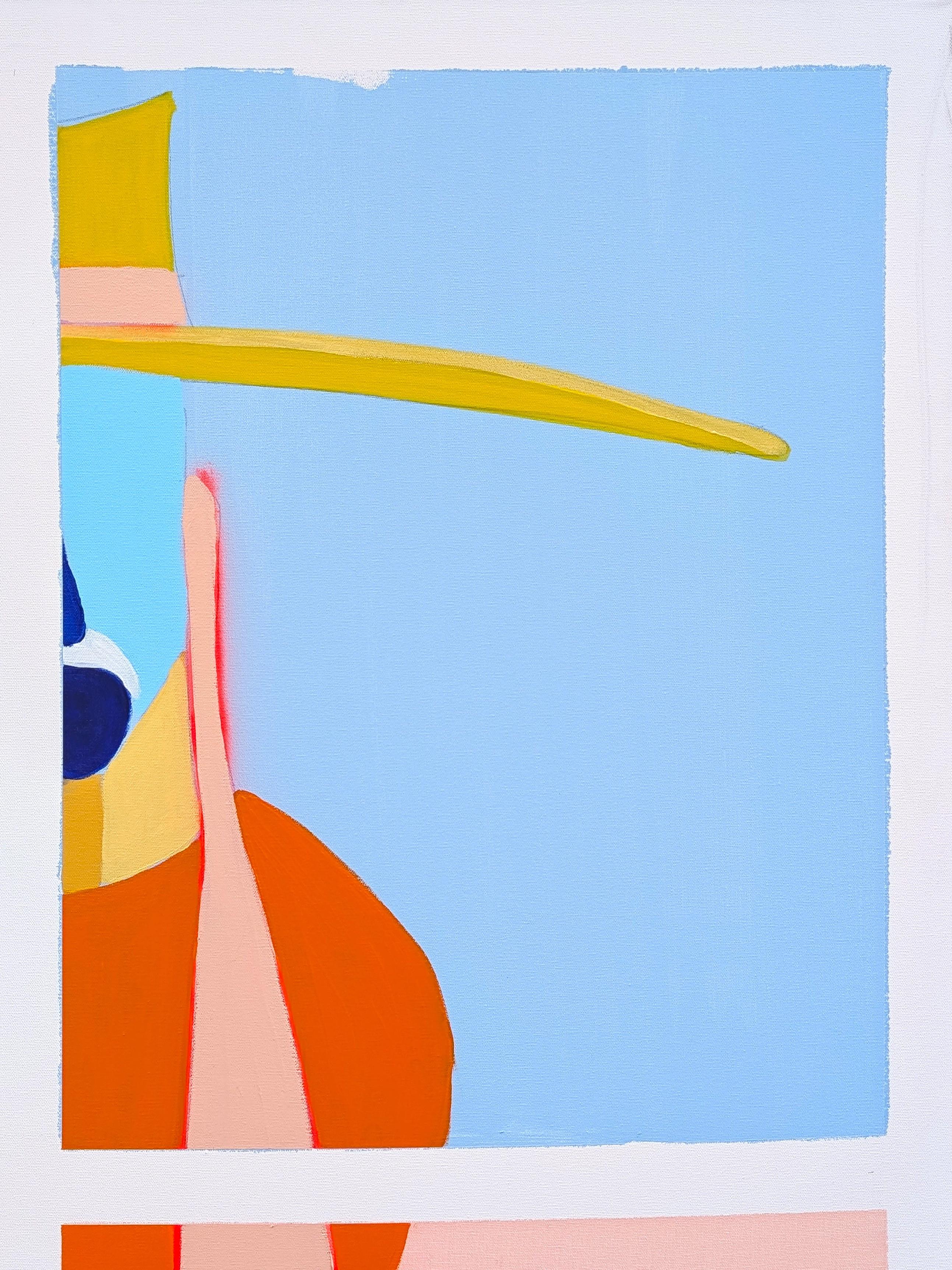 Contemporary colorful pastel western inspired cowboy painting by Texas based artist Nick Stevenson. The work features a standing figure wearing a cowboy hat broken into four colorful quadrants. Signed, titled, and dated on the reverse. Currently unframed.