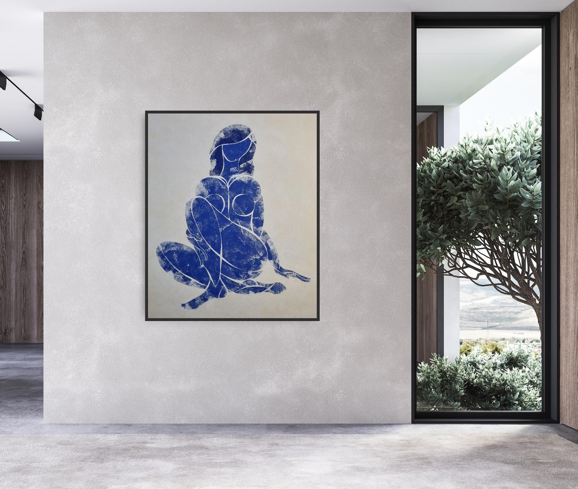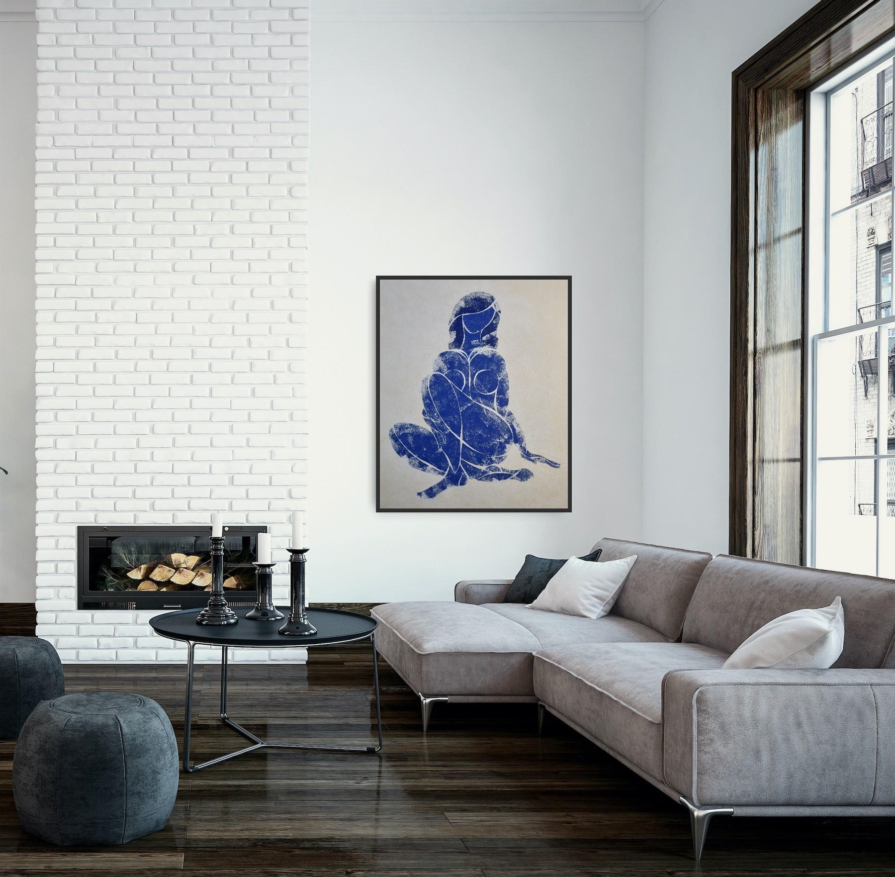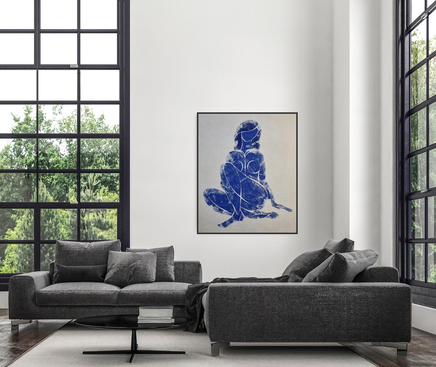 “Woman in Love”. Part of Blue Nude series, inspired by Matisse. Ultramarine tempera on paper. Comes with a certificate of authenticity signed by the artist. Shipped rolled in a tube...