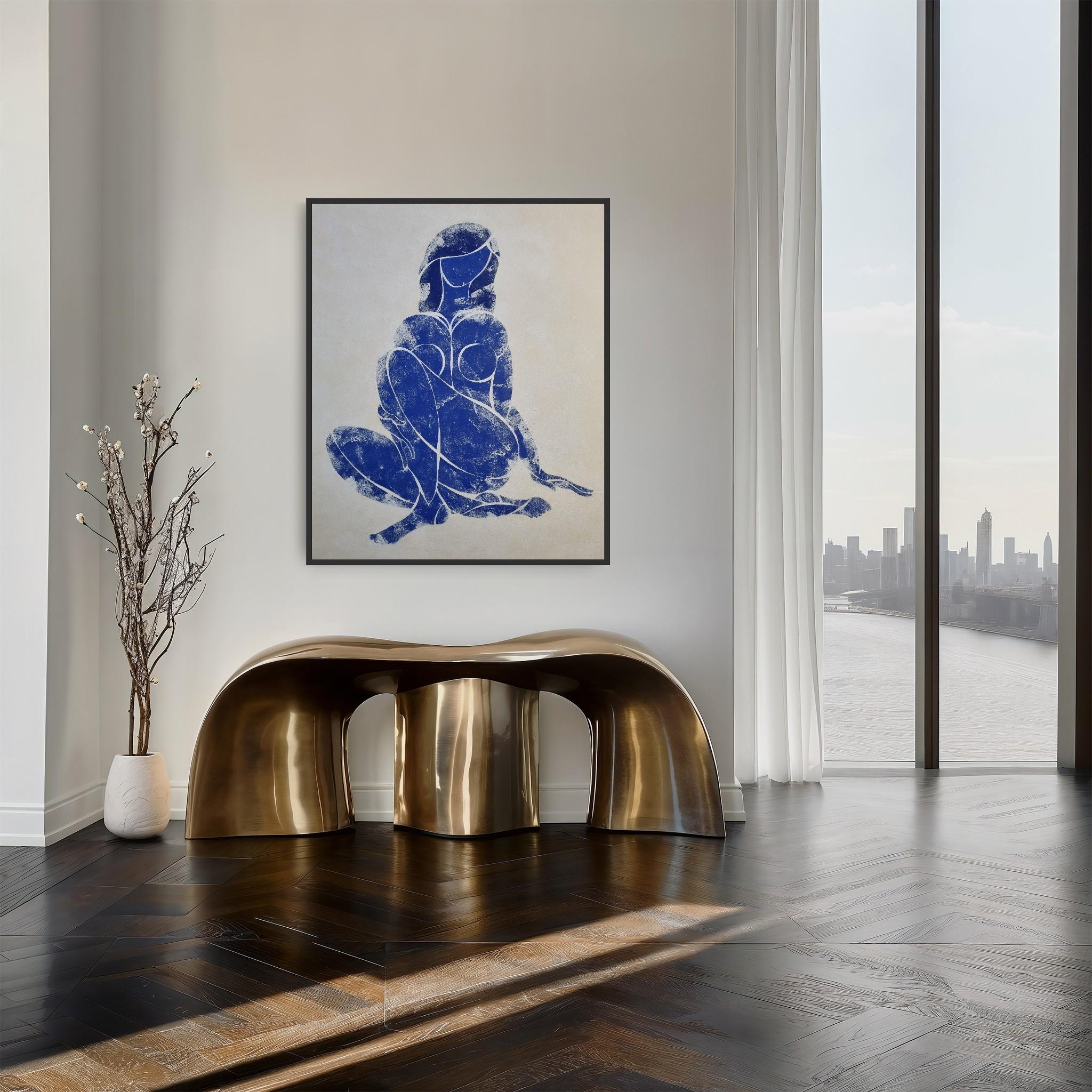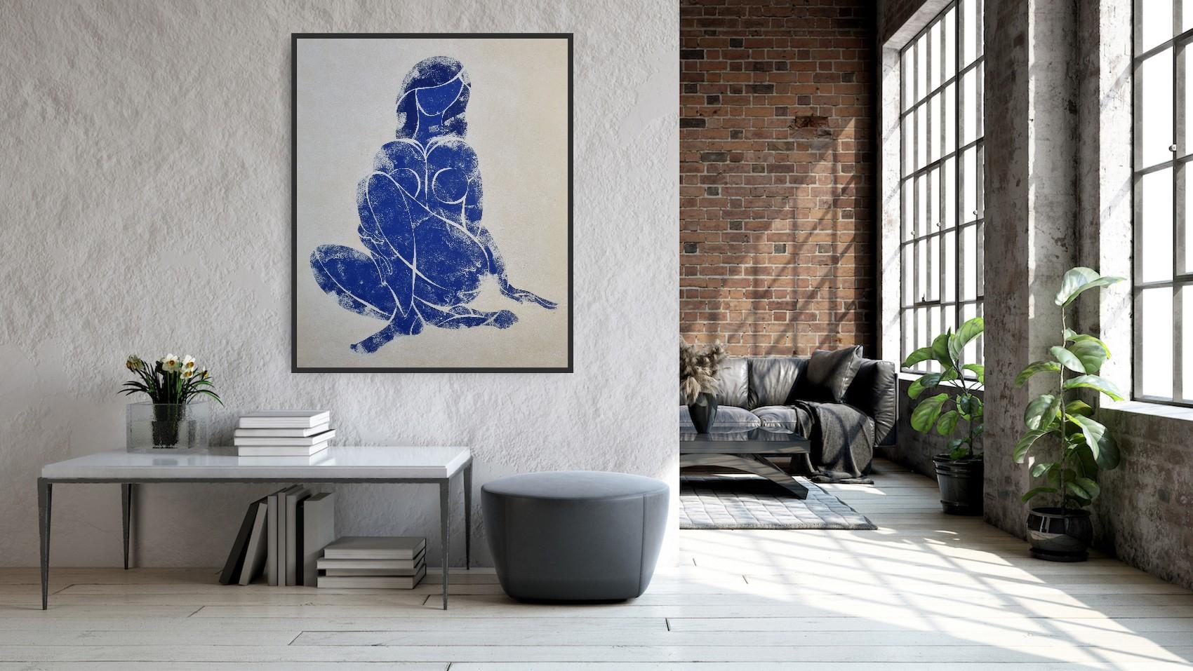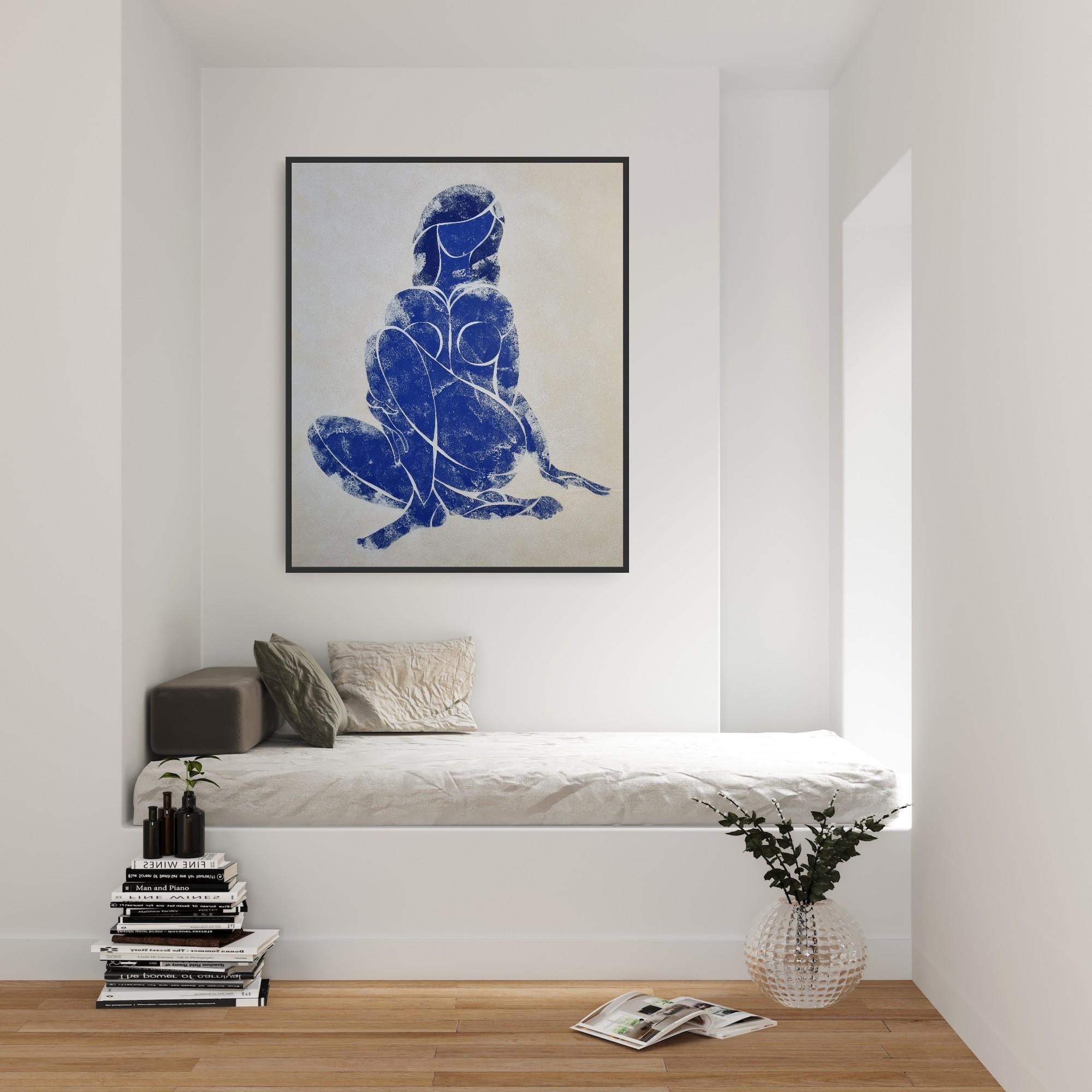 “Woman in Love”. Part of Blue Nude series, inspired by Matisse. Ultramarine tempera on paper. Comes with a certificate of authenticity signed by the artist. Shipped rolled in a tube...