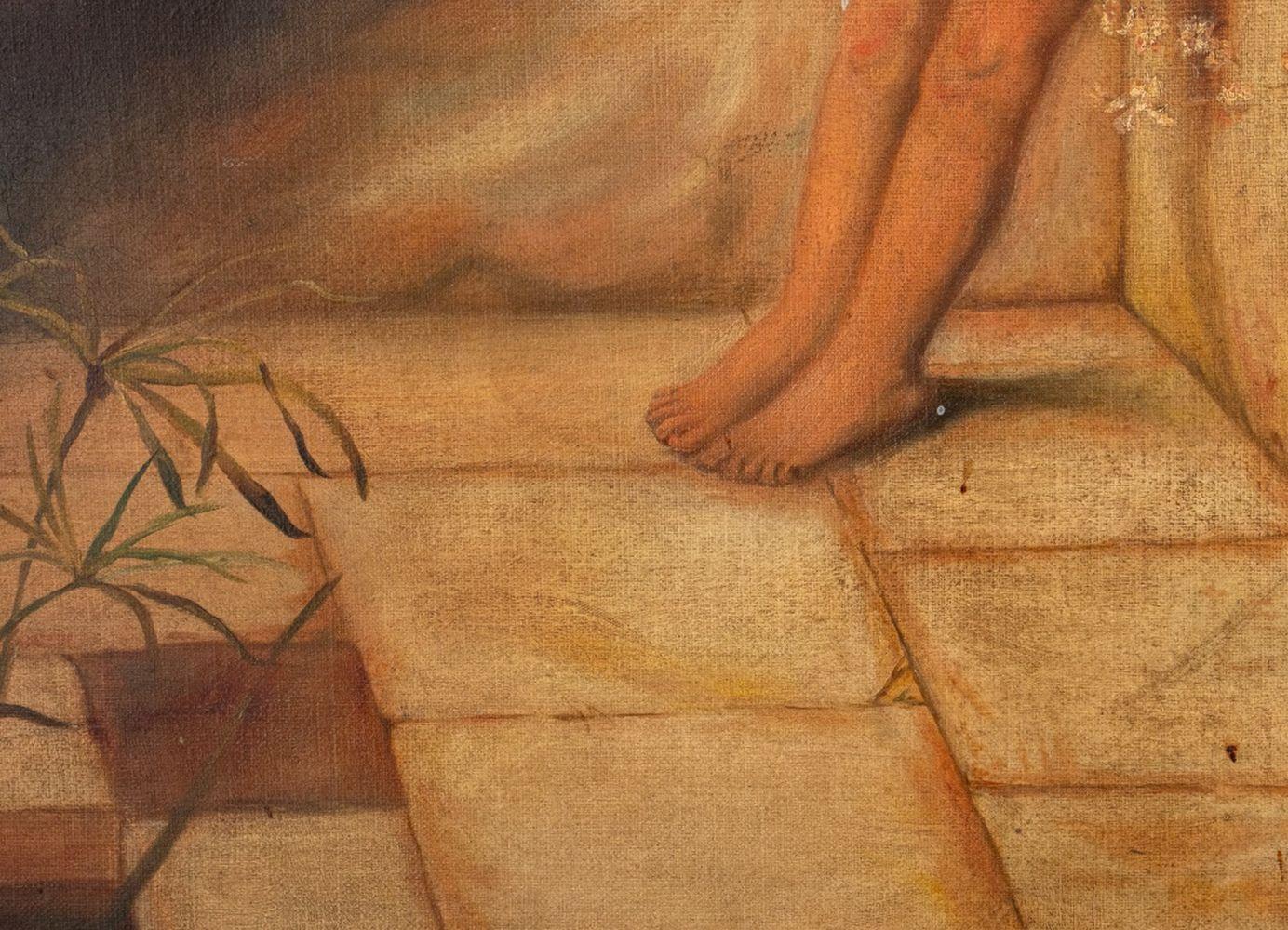Beautiful painting of the Neapolitan school signed, dated and located. It has a metal plate on the front with the inscription ‘PAESAGGIO NAPOLETANO NUCCI Agosto 1893’.