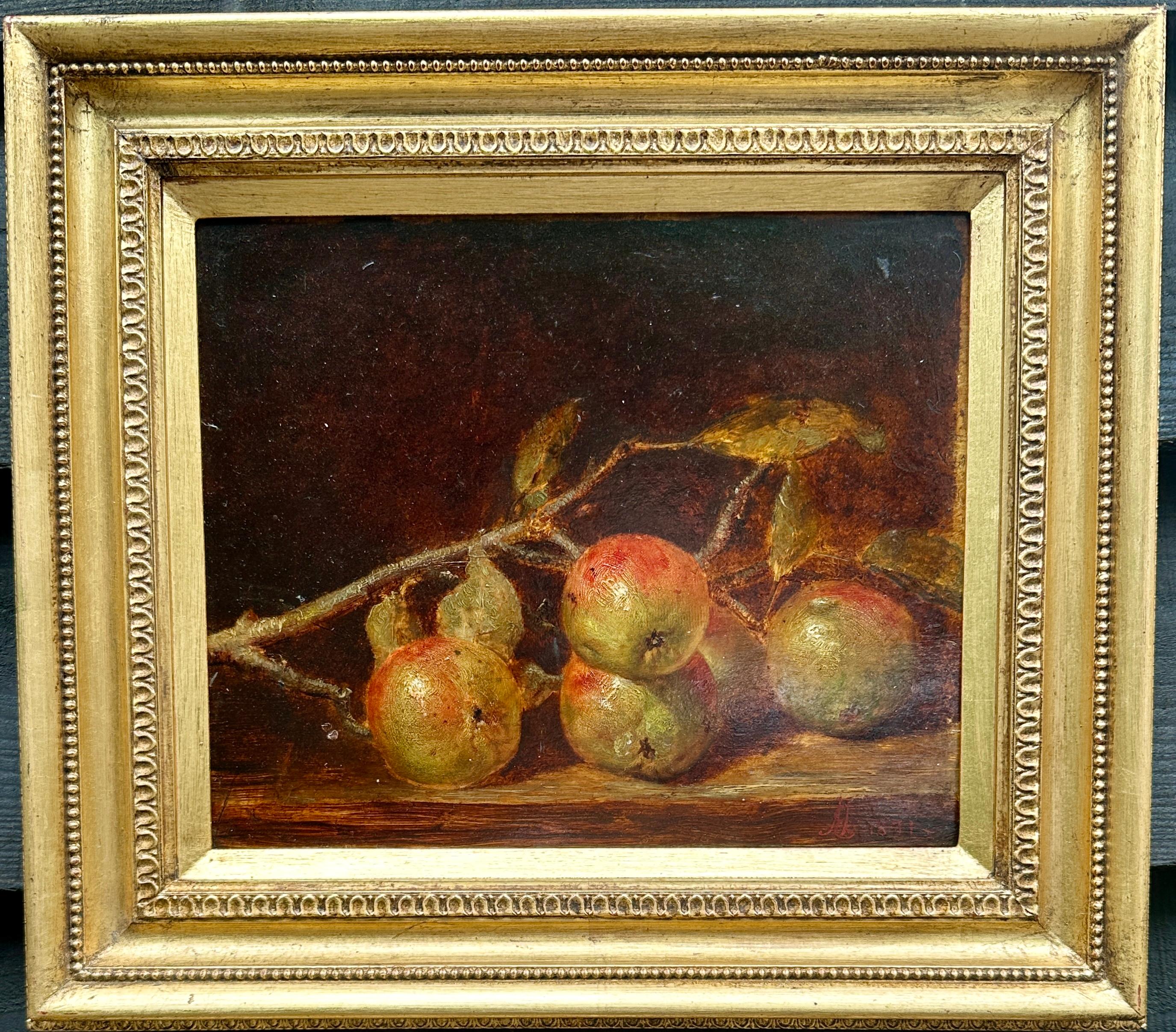 charming antique oil painting on wood board unsigned but attributed to the artist, Adolphe Deteix (1892-1967) see label on back, part of a private collection. Three women sit aroun...