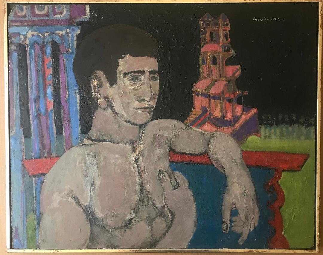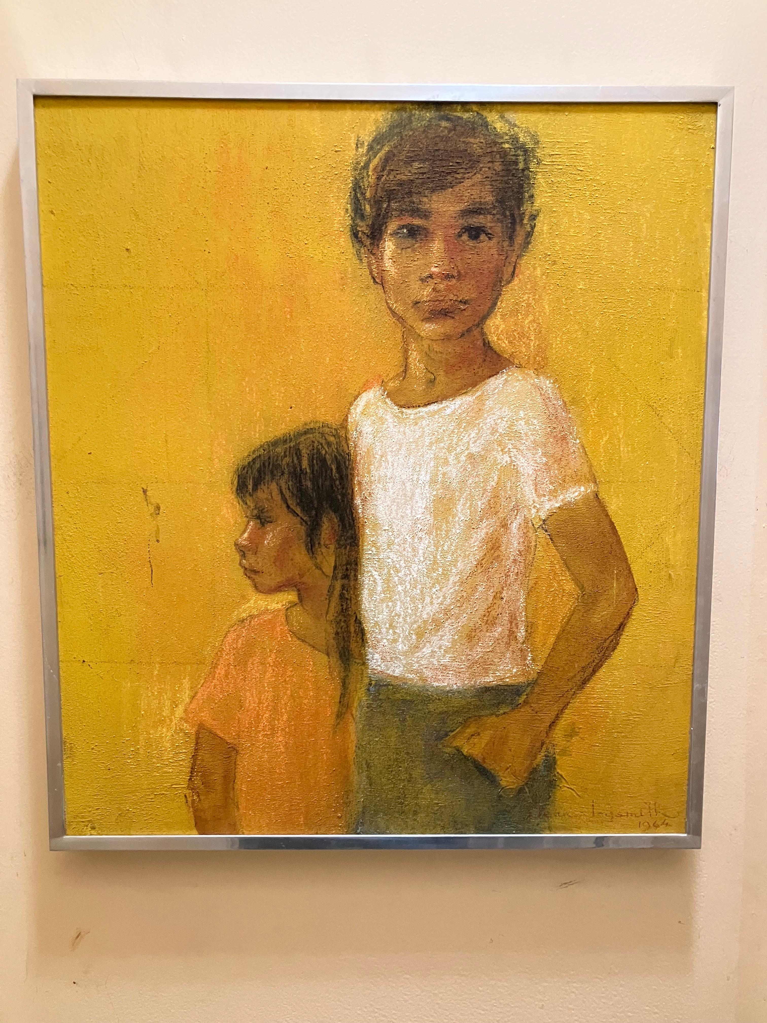 Mid-Century vintage riverscape, a colourful copy of Claude Monet's Sailboats on the Seine at Petit-Gennevilliers. An oil on wood in a gilt frame which sets off the painting beautifu...
