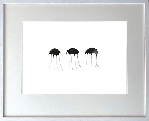 Awkward Silence by Gabrielle Pool Ink on Paper with Wooden Frame