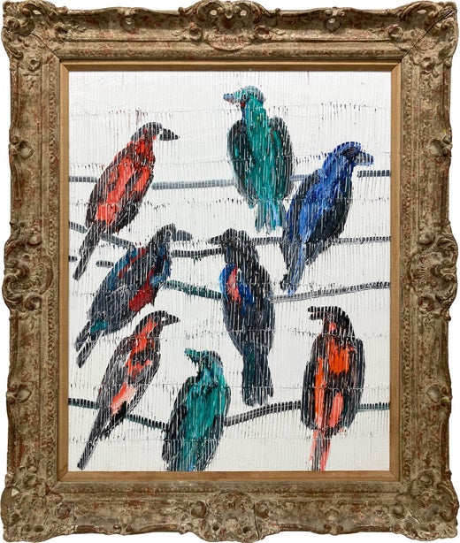 Artist: Slonem, Hunt Title: Untitled Migration Date: 2025 Medium: Oil on canvas Unframed Dimensions: 30" x 36" Signature: Signed by Artist on Verso Edition: Unique Hunt Slone...