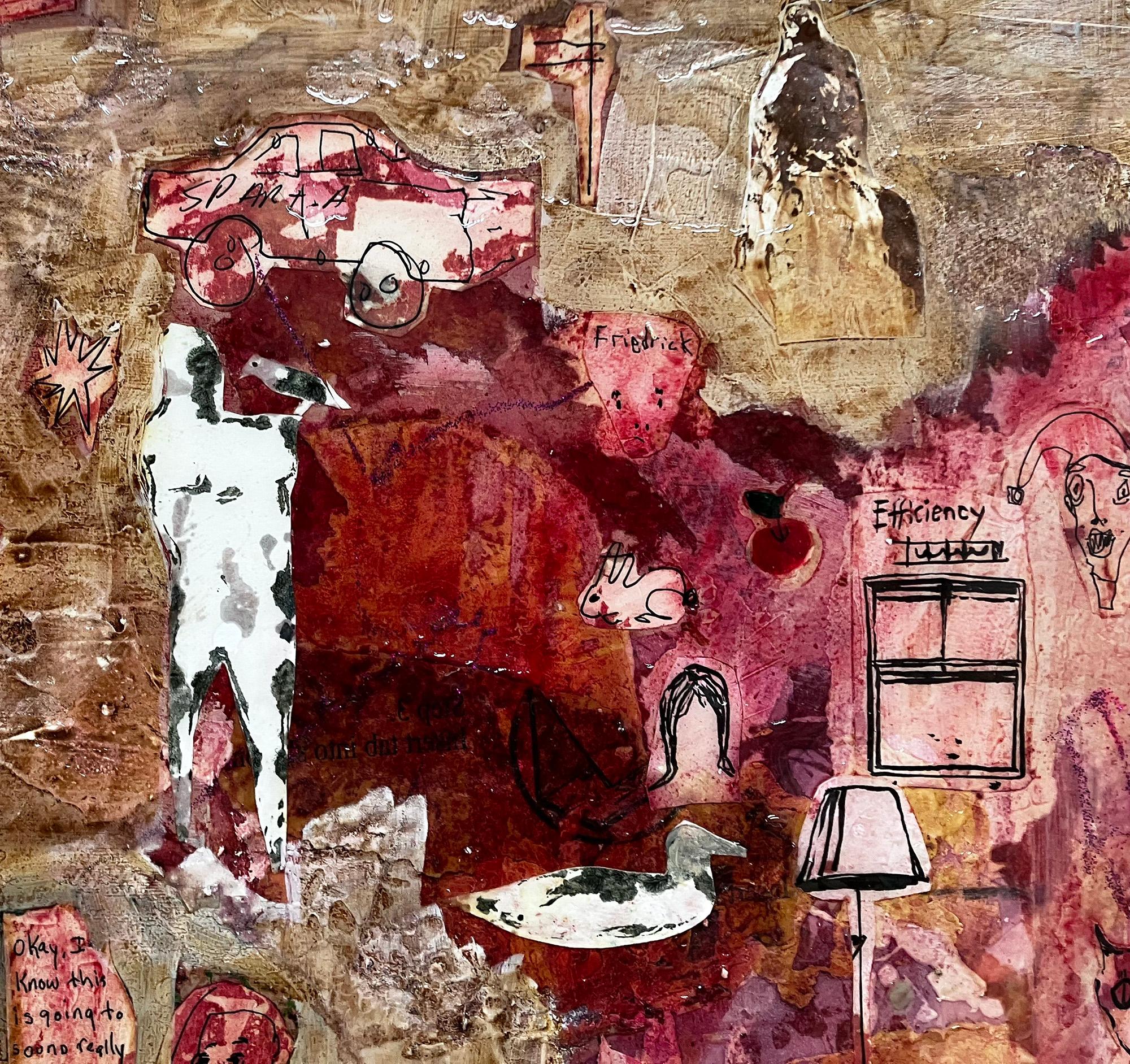 C. DimitriSafe in Here, Red tones, abstract w figures, dogs, cats, cars2025
