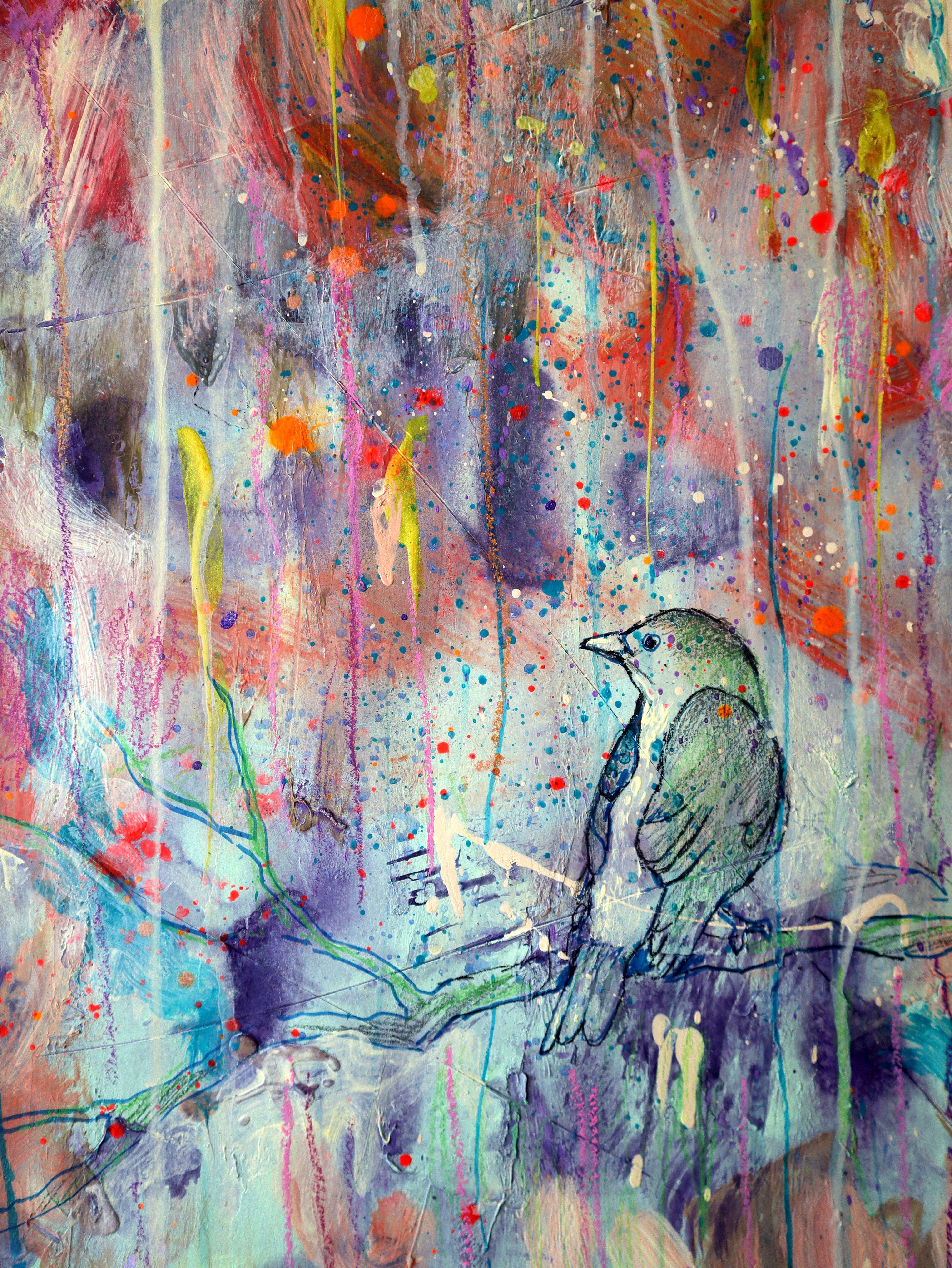 "In this work, the interaction of acrylic and ink unfolds in an abstract explosion." said Anna about this abstract painting. "With passionate brushstrokes I wanted to capture the com...