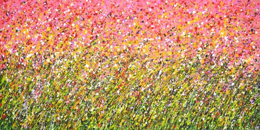 Expressive modern abstract, bold full of life, gloss and shimmer! inspired by nature, many of bright tones combined with mica particles and iridescent drizzles over red. Ready to han...