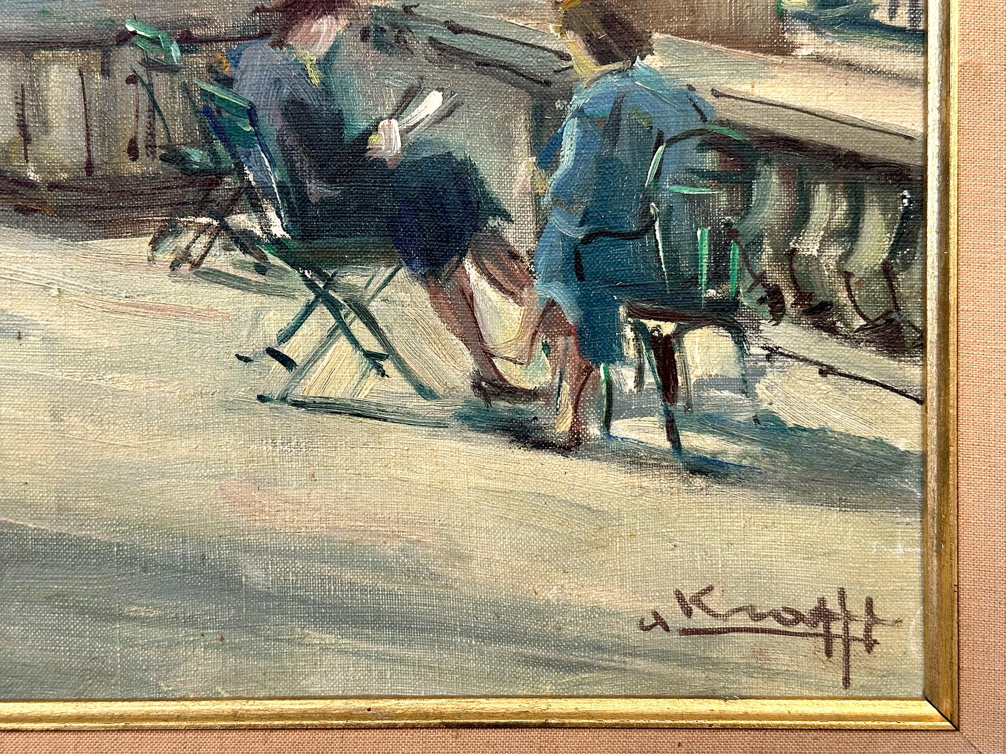 Krafft's stylized figures and forms brought a unique modernity to familiar landmarks, transforming everyday vignettes into luminous celebrations of French life. His works, often signed with a distinctive flourish, remain highly sought after worldwide, reflecting his enduring legacy as a chronicler of Paris's soul.
