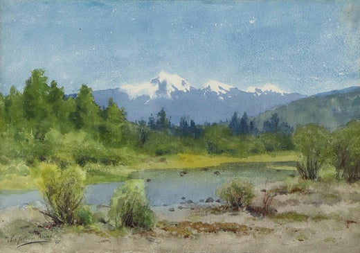 View AllColorado Mountain Landscape with River, 1890s Watercolor Painting