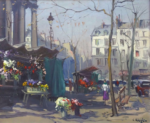 Constantin Kluge was a Russian-born French painter best known for his naturalistic scenes of Paris and French countryside. Kluge was born to a wealthy military family on January 29, 1912 in Riga, Latvia, which was then a large, industrial Russian port city. He spent much of his childhood and young adult life between Manchuria, Beijing, and Hong Kong, where he discovered a love for brush and ink painting. Kluge studied architecture at the École des Beaux Arts in Paris and earned his diploma in 1937. Upon graduating, he painted the city’s river banks and streets before returning to Shanghai. With the rise of Communism in China, the artist fled to Paris in 1950 and began exhibiting in French Salons. In the 1960s, Kluge's work caught the eye of American art dealer Wally Findlay, of Wally Findlay Galleries. Findlay began to represent Kluge, bringing his Parisian paintings to America and showing them in his galleries in New York, Chicago, and Los Angeles. Kluge continued to achieve great success in his artistic career, receiving several awards and honors, and showing his works across Europe and America. He died on January 9, 2003 in Paris, France. Kluge’s works are in the collections of the Musée d’Orsay and the Musée d’Art Moderne in Paris, among others.