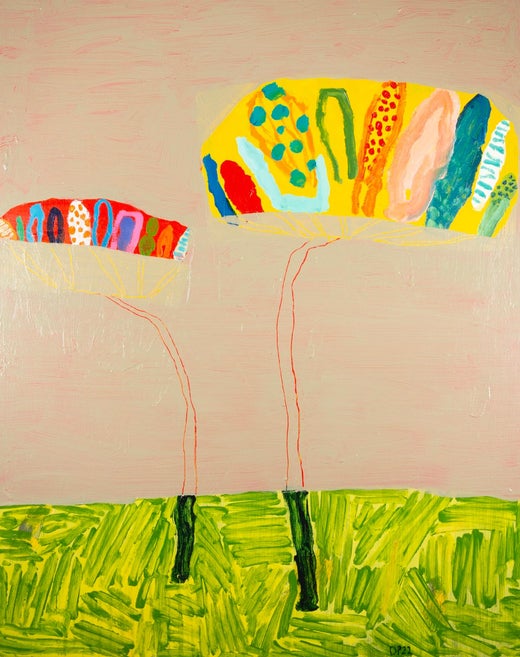 Hamlet, 2024 - Contemporary Landscape Acrylic Painting in Yellow and Orange