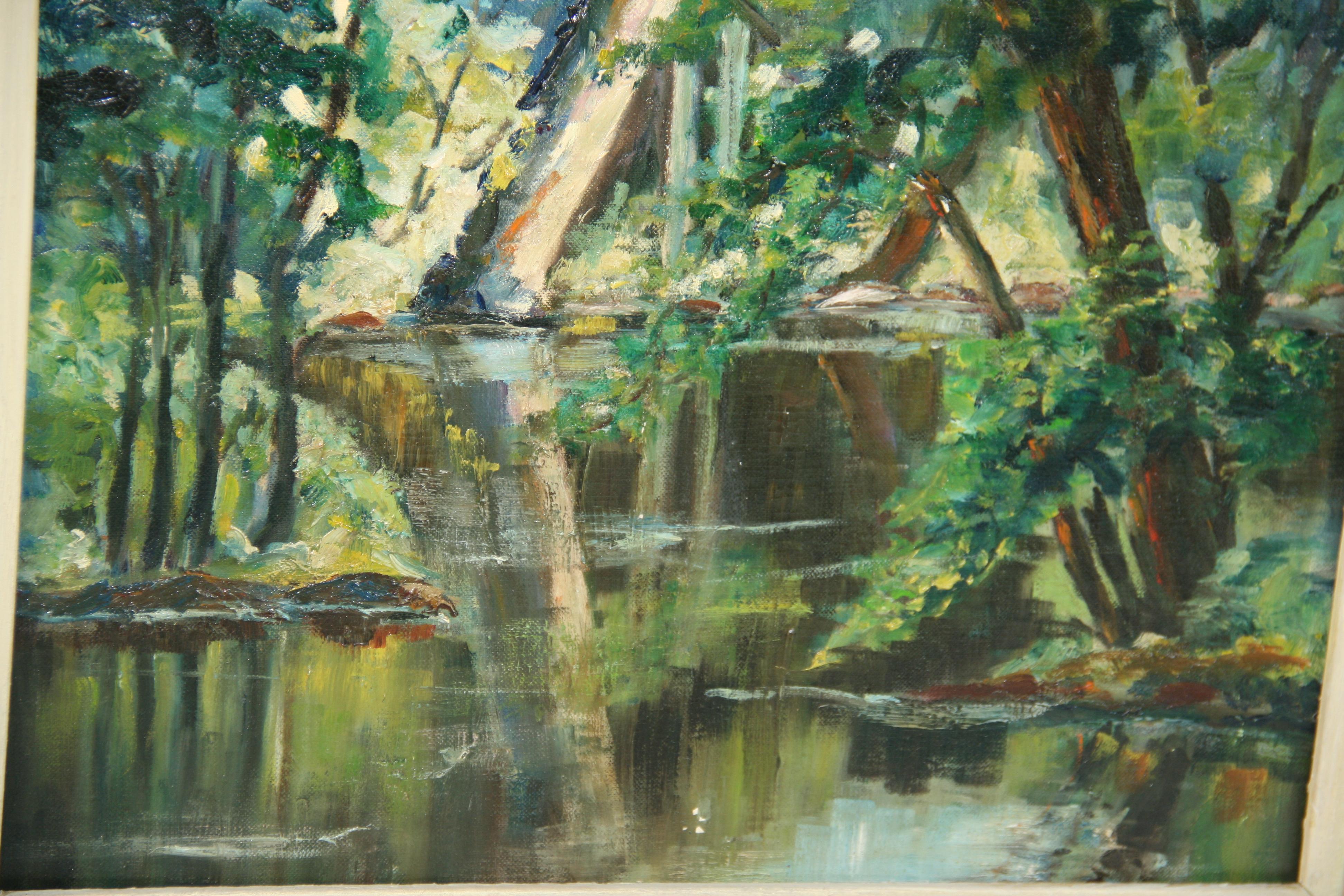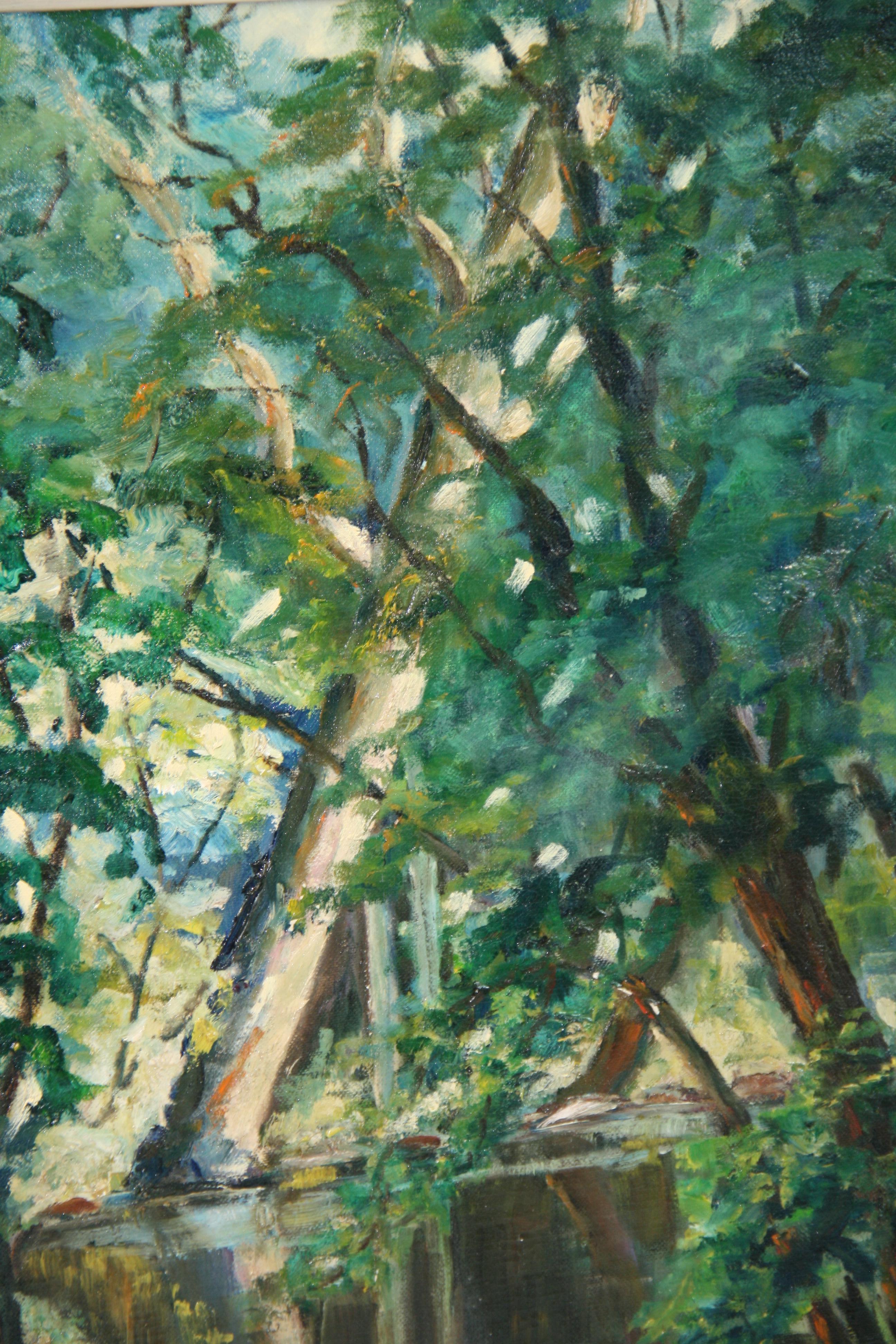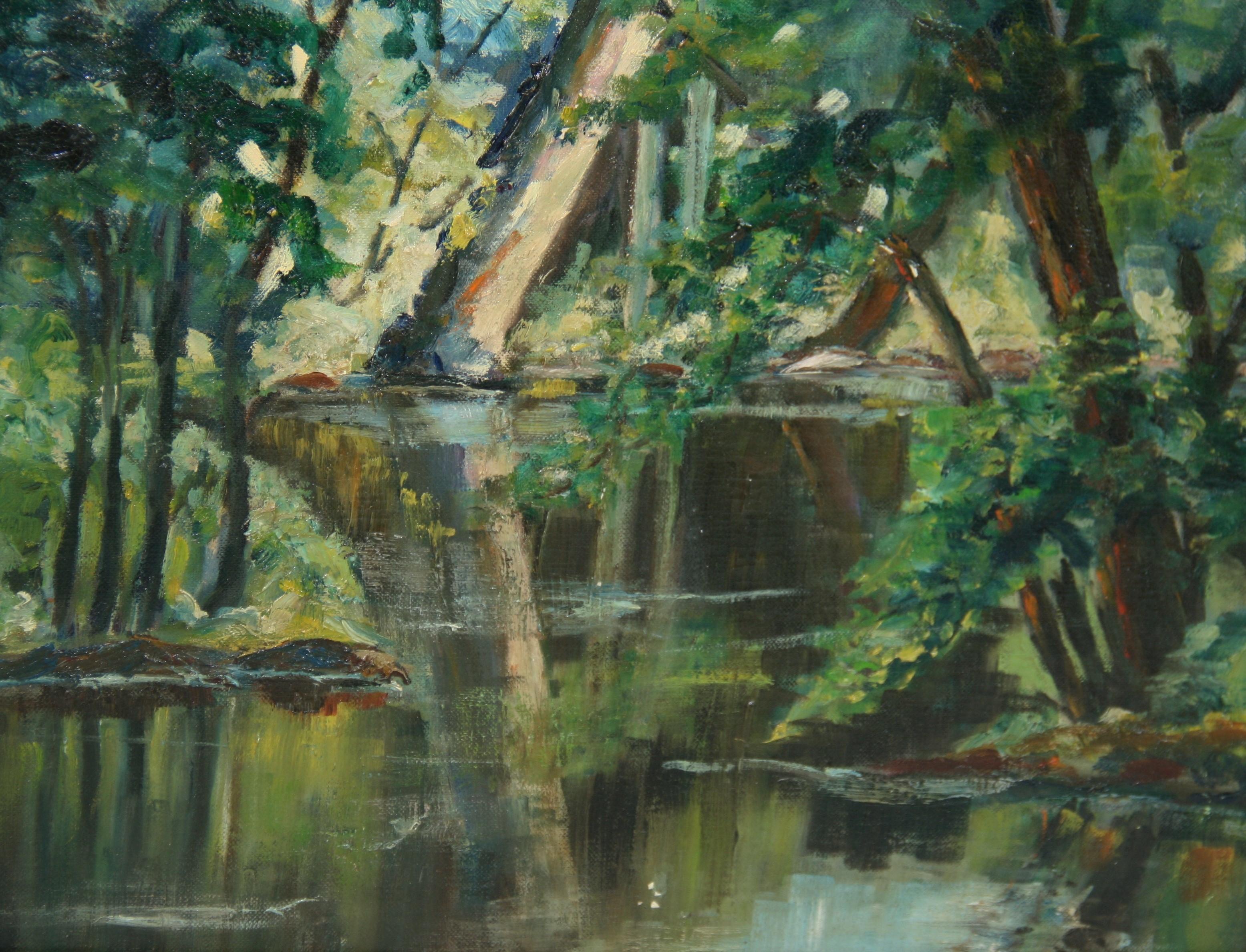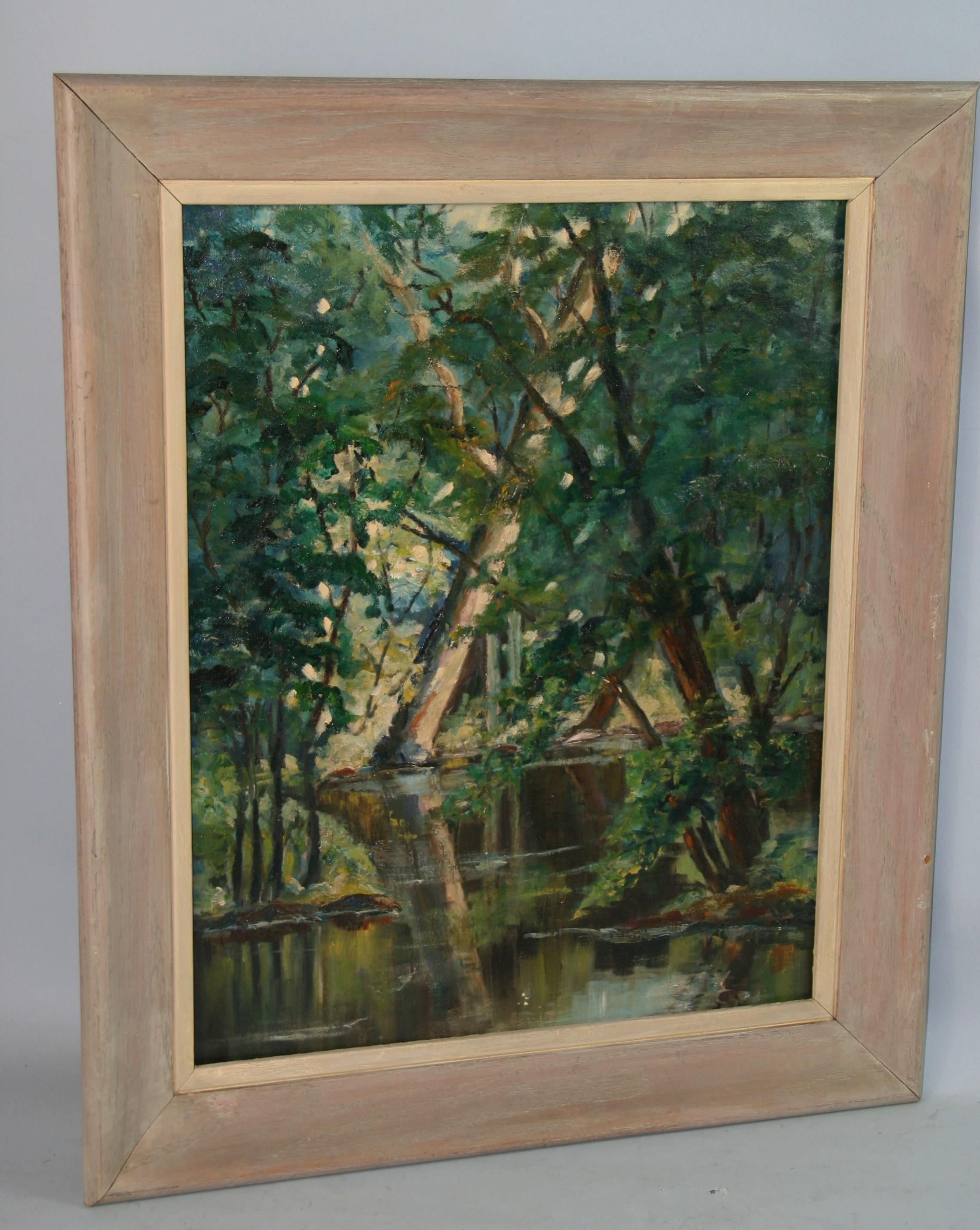 Woodland River - Mid 20th Century Oil Landscape of Forest by Leonard Richmond